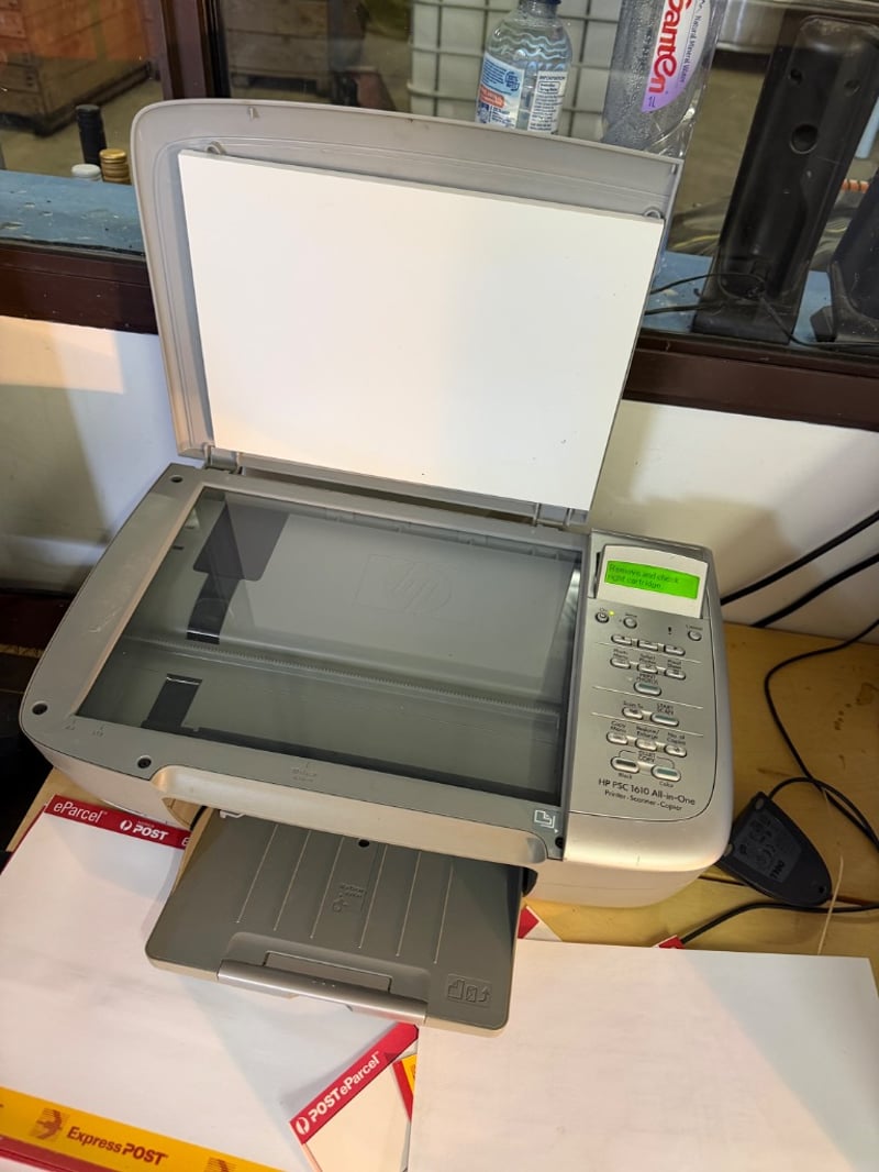 Office equipment includes DELL PC, HP PSC 1610 All in One Scanner-Printer, desk- Copier and more.SOLD AS LOT