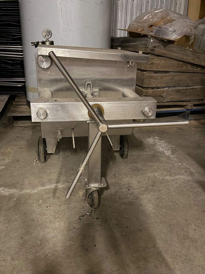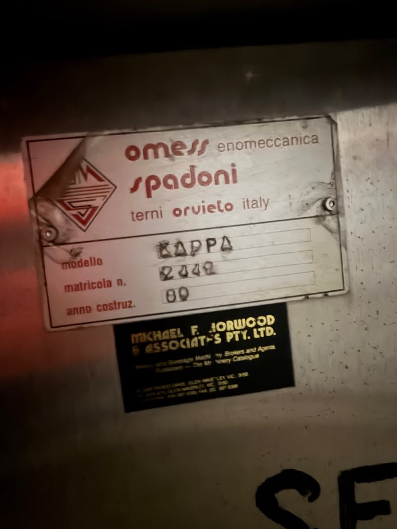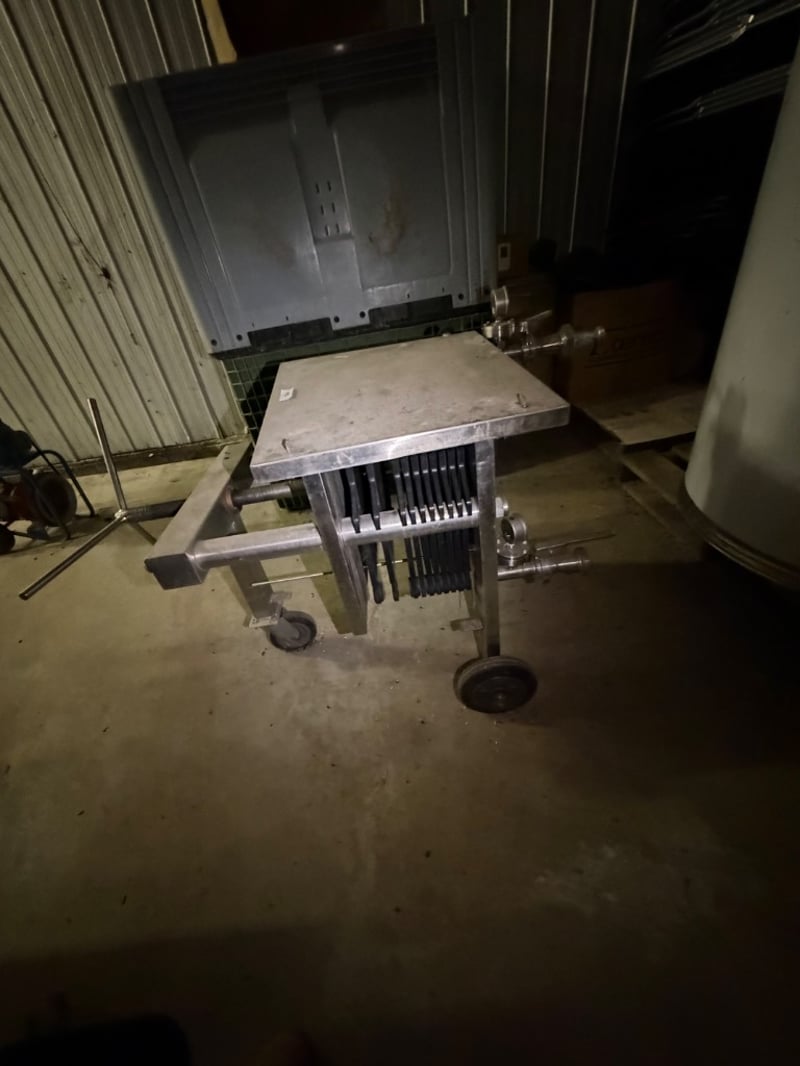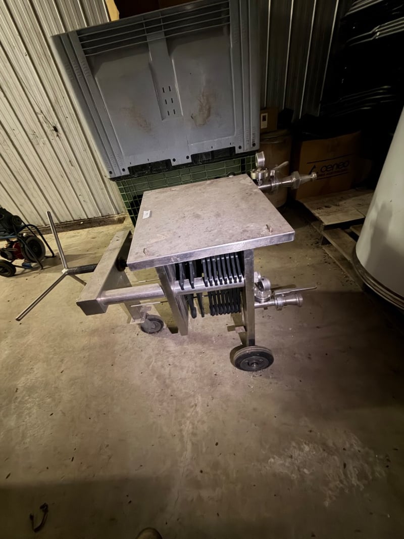 Plate&Frame Filter used for filtering liquids like wine and beer. Manufactured by Omess Enomeccanica Spadoni, Terni, Orvieto. Model Kappa 2448, construction year 1989 Shows patina consistent with age and previous use. Untested, sold as it. Approximately Dimensions: 90H x 130D x 70W cm
