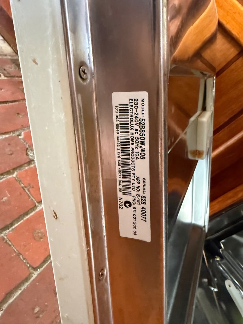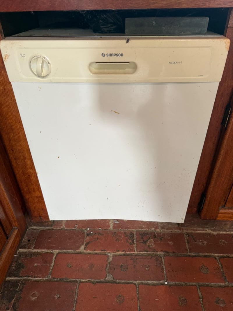Dishwasher, Simpson, 52B850WJ*05, Serial: 628 40077230-240V/ 50HZ. Item is untested, sold as is. Note: Buyer to bring appropriate tools/ equipment to remove.