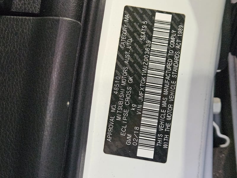 2018 Mitsubishi Eclipse Year: 2018 Make: Mitsubishi Model: Eclipse Cross GK Body: 4-Door Hatch Drive Type: Rear wheel drive Odometer: Indicating 170,892 Kilometers Transmission: Automatic Colour: White Seats: 5 Description/extras: Air Conditioning, Power windows, Reverse camera, Central locking. VIN: JMFXTGK1WJZ003639 ENG No: 4B40DD9695 (Key #A45 (VIC)) Lloyds stock #993915+1