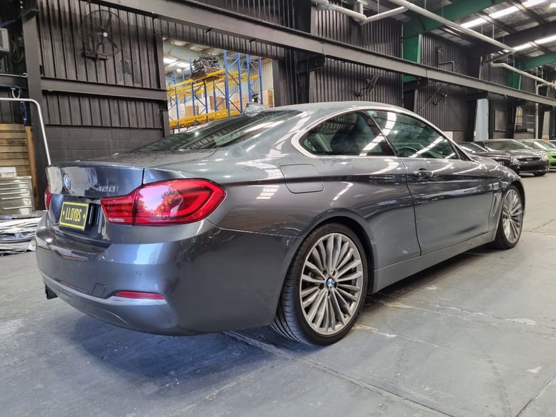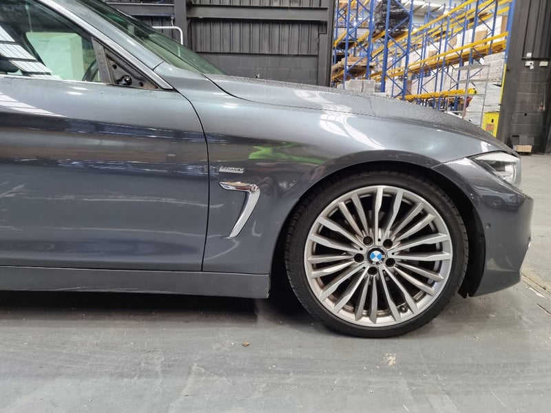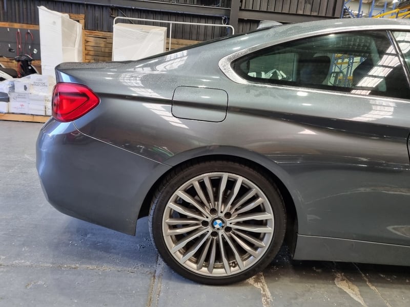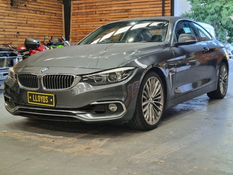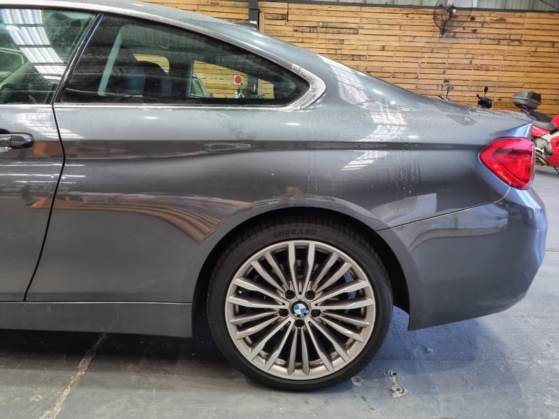 2017 BMW 420i F32 Luxury Line Wagon. two-door, four-seat wagon, 2.0-litre four-cylinder inline engine paired with an automatic transmission, rear-wheel-drive, The vehicle showcases BMW's premium engineering and luxury appointments characteristic of the Luxury Line specification. Finished in grey with distinctive alloy wheels and comprehensive interior appointments, this wagon combines practical cargo space with executive comfort. The odometer reads 138,909 kilometres, reflecting consistent use of this well-maintained German engineering masterpiece. Cracked windscreen, Broken dashboard display screen, Damaged door trim panel, Scuffed interior door handle, Worn leather seat bolster, Scratched alloy wheel, Minor paint scuff on body panel, Broken window regulator mechanism. Inspection recommended.