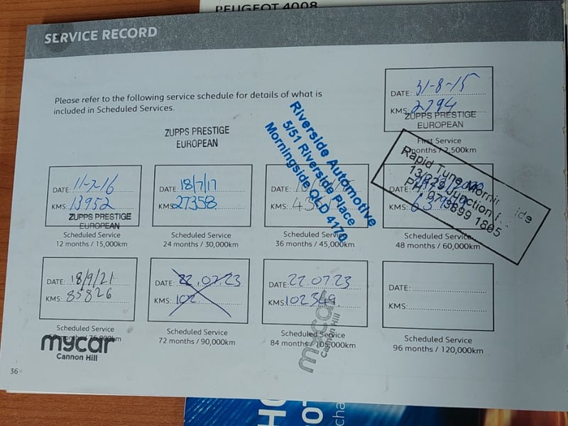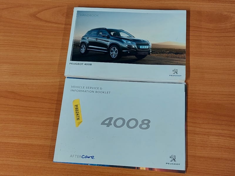 2014 Peugeot 4008 Wagon presented in striking grey and red two-tone livery. This five-seat compact wagon features a 2.0-litre inline four-cylinder petrol engine with aspirated induction, delivering reliable performance for everyday driving. Equipped with automatic transmission and front-wheel drive configuration, the vehicle offers practical urban mobility. The odometer displays 126,111 kilometres, indicating moderate usage. Interior appointments include fabric and leather upholstery with functional climate control and infotainment systems. The vehicle comes complete with original Peugeot service logbook documenting scheduled maintenance history, and owner's manual. Alloy wheels with all-season tyres provide contemporary styling. A spare wheel is stored beneath the cargo floor. The vehicle presents as a well-maintained example suitable for family or commercial use. Scratches and scuffs to grey upper body panels, minor paint chips on bonnet, light surface scratches to door handles, scuff marks on lower red body stripe, minor creasing to rear quarter panel, light scratches to side mirror housing, small dent visible on rear bumper, general weathering to exterior trim, interior upholstery shows minor wear consistent with age and mileage.. Inspection recommended.