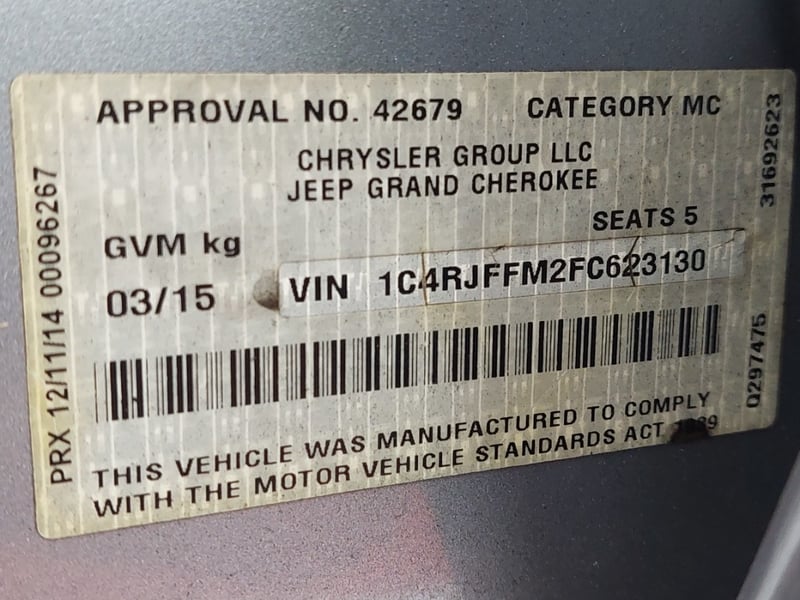 Presented is a 2015 Jeep Grand Cherokee Limited, a sophisticated four-wheel-drive SUV finished in elegant silver. This five-seater is powered by a 3.0-litre turbocharged V6 diesel engine paired with an eight-speed automatic transmission, delivering robust performance and efficiency. The vehicle displays 202,572 kilometres on the odometer and features right-hand drive configuration. The cabin showcases quality leather appointments with contrasting stitching, complemented by a modern infotainment system with touchscreen display. The Grand Cherokee presents as a well-maintained example with comprehensive service records documented in the logbook, demonstrating consistent maintenance throughout its operational history. The vehicle includes the manufacturer's owner manual. Custom alloy wheels with all-terrain tyres provide capable off-road credentials, whilst the spacious cargo area and versatile seating configuration make this an ideal family SUV. This Limited specification represents the pinnacle of comfort and capability in the Grand Cherokee range. Engine Needs Attention, Minor scuff marks to dashboard, light scratches to door trim, minor wear to leather seats, small dent to rear bumper, minor paint chips to bonnet edge, light surface scratches to rear quarter panel.. Inspection recommended.