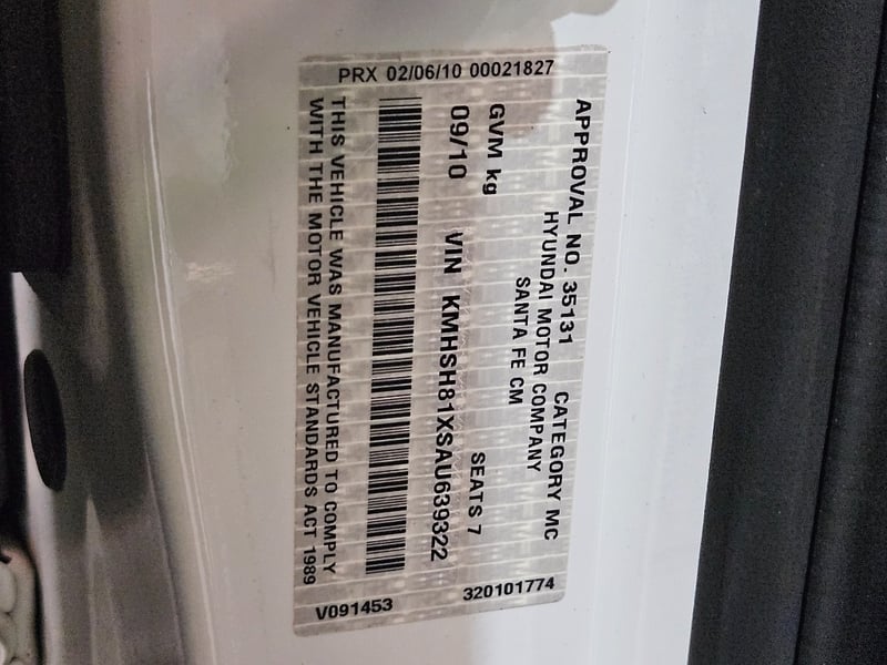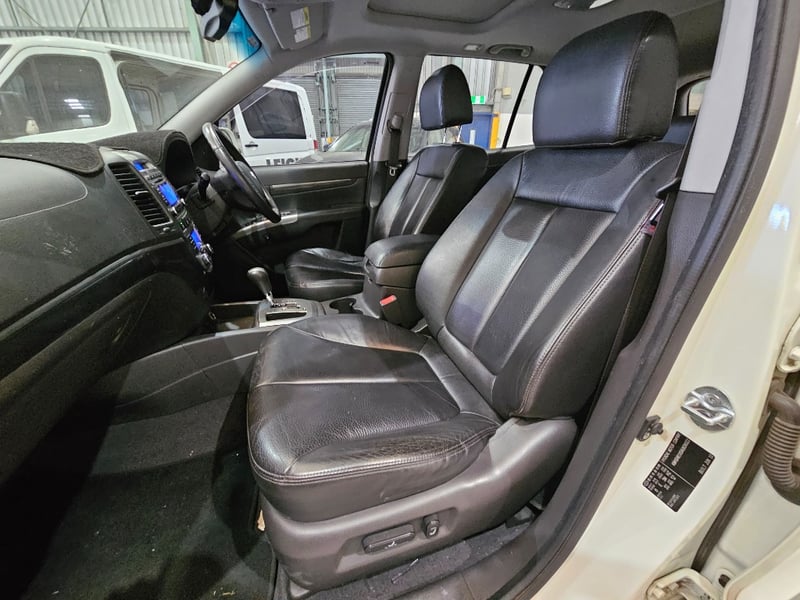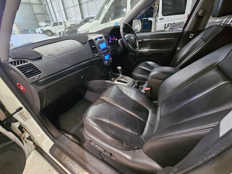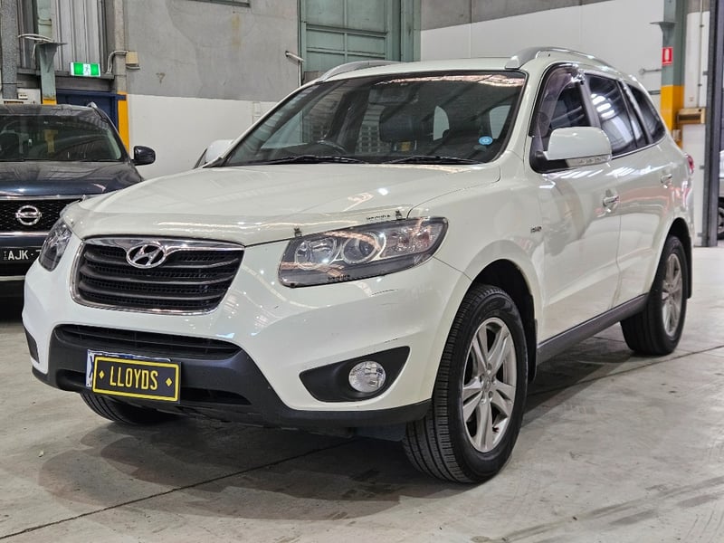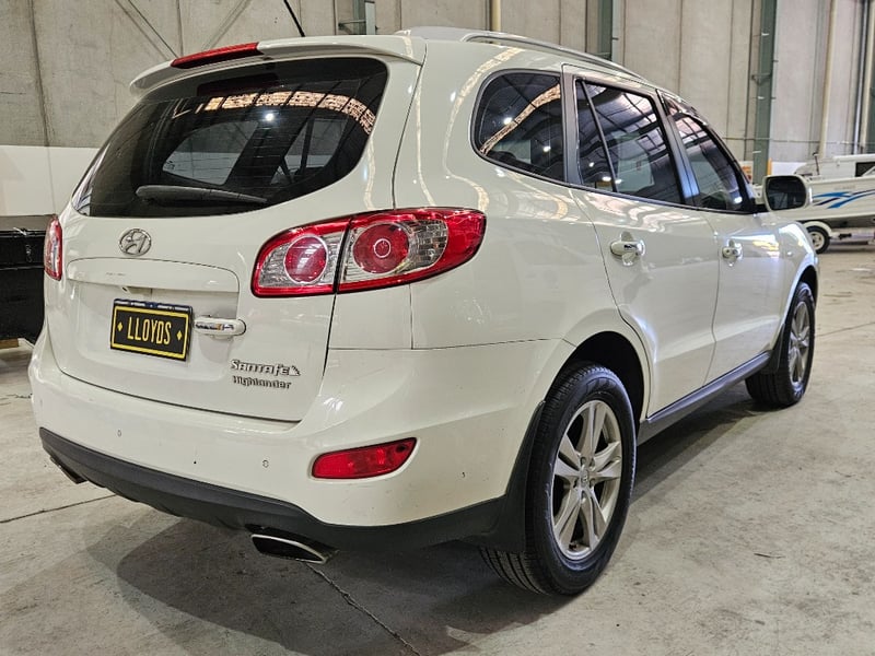 2010 Hyundai Santa Fe Year: 2010Make: HyundaiModel: Santa FeBody: 4-Door SUVDrive Type: Four wheel driveOdometer: Indicating 244,262 KilometersEngine: PetrolTransmission: AutomaticColour: WhiteSeats: 5Description/extras: Air Conditioning, Power windows, Leather interior, Reverse camera, Central locking, CD player, Owners manual. VIN: KMHSH81XSAU639322ENG No: D4HBAU243736(Key #A49)Lloyds stock #998822+1