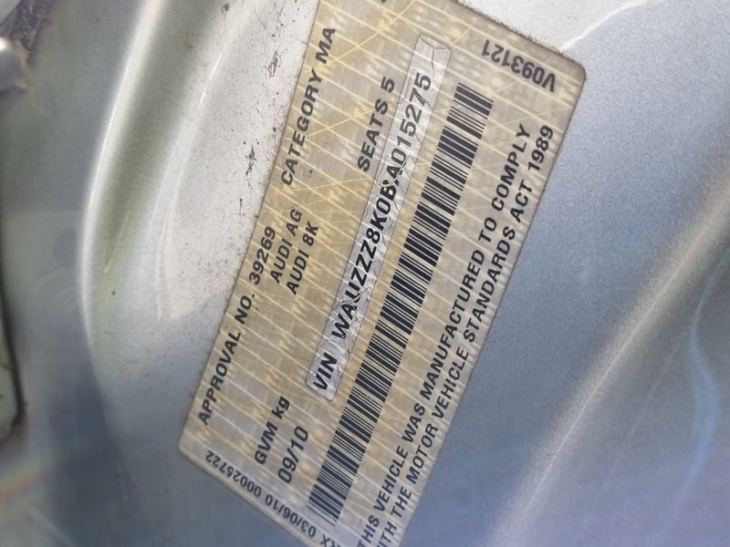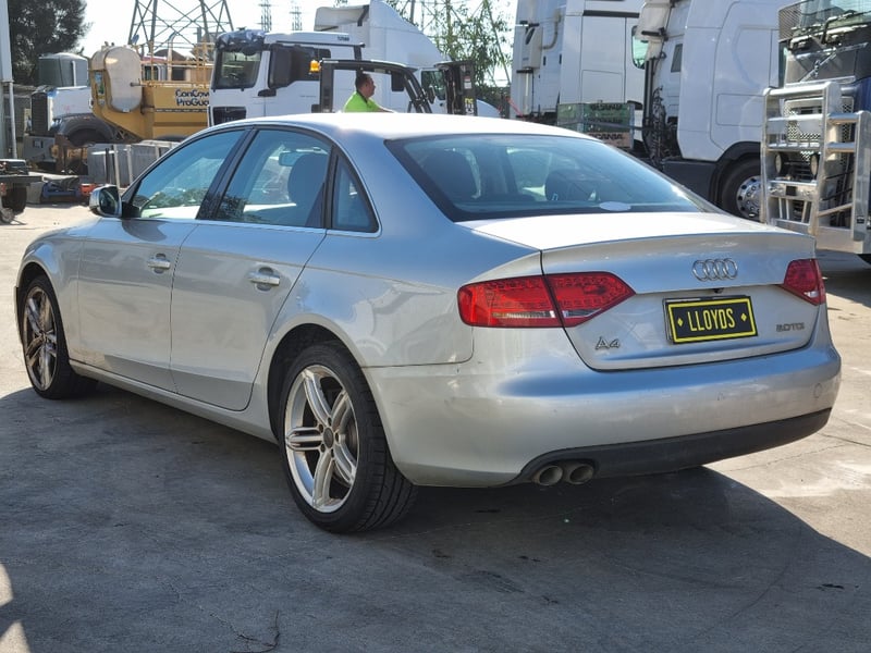 2010 Audi A4 Year: 2010 Make: Audi Model: A4 Body: 4-Door Sedan Odometer: Indicating 248,731 Kilometers Engine: Petrol Transmission: Automatic Colour: Silver Seats: 5 Description/extras: VIN: WAUZZZ8K0BA015275 ENG No: CAG402539 Sold unregistered (Key #a26 (vic)) Lloyds stock #993931+1