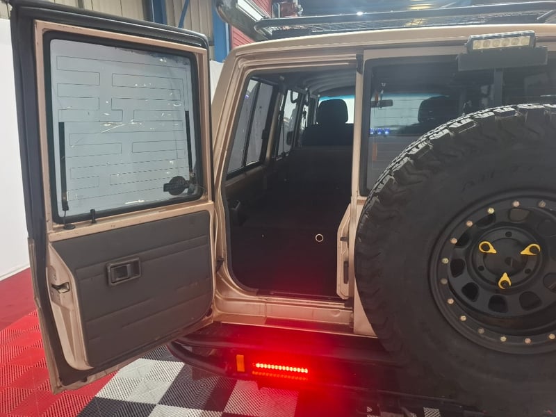 LED guages, seat covers Sony after market head unit, vinyl floor,, large roof rack, full size spare, rear seats have been removed for custom draw and storage, Falken wildpeak A/T tyres LT305/70 R16s , 9 pin tow plug and standard 50mm tow ball.