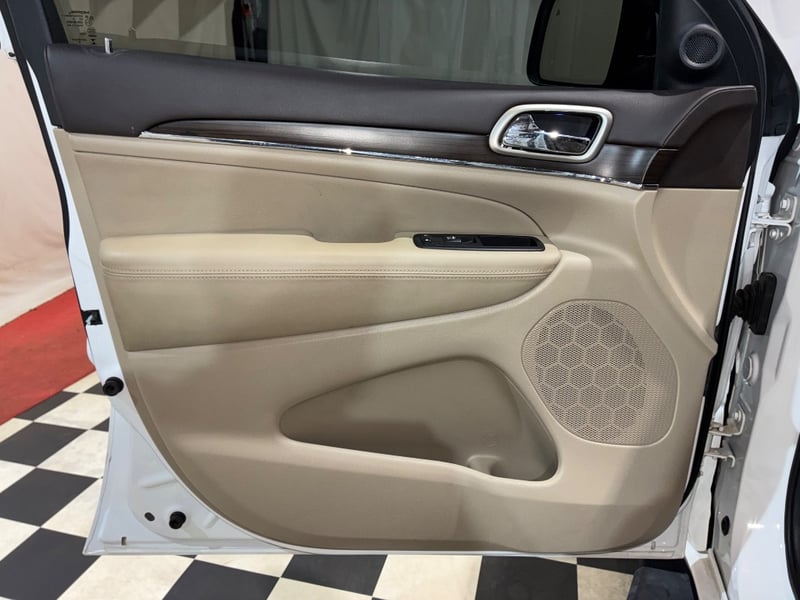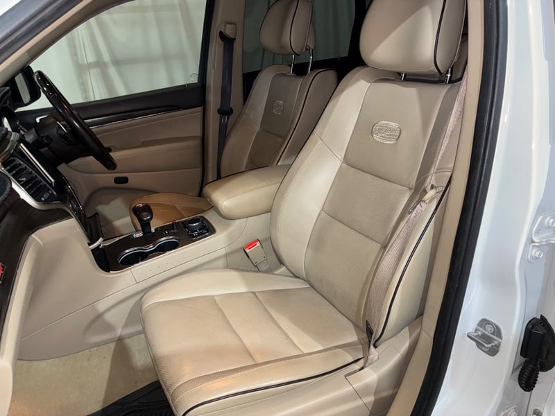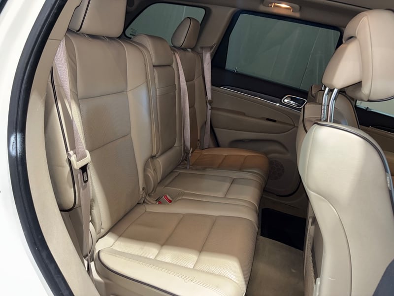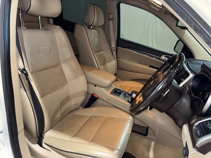 Exceptional 2014 Jeep Grand Cherokee WK2 4x4 featuring the formidable 5.7-litre HEMI V8 petrol engine delivering commanding performance. This eight-cylinder powerhouse is paired with an eight-speed automatic transmission, ensuring smooth gear transitions and optimal fuel efficiency across varied driving conditions. The vehicle showcases four-wheel drive capability with full-time engagement, providing superior traction and stability on both sealed and unsealed surfaces. Finished in pristine white exterior with cream leather interior trim, the cabin presents a sophisticated aesthetic complemented by tan-coloured upholstery featuring textured fabric inserts. The spacious five-seat configuration offers comfortable accommodation with dual-zone climate control and premium audio system integration. Odometer reading of 183,852 kilometres indicates moderate usage for a vehicle of this vintage. The Grand Cherokee demonstrates the iconic seven-slot grille design characteristic of the WK2 generation, complemented by contemporary LED headlight technology and integrated fog lamps. Interior amenities include a touchscreen infotainment system with Jeep branding, leather-wrapped steering wheel with integrated controls, and comprehensive instrumentation. Panoramic sunroof adds to the premium feel of this capable SUV.