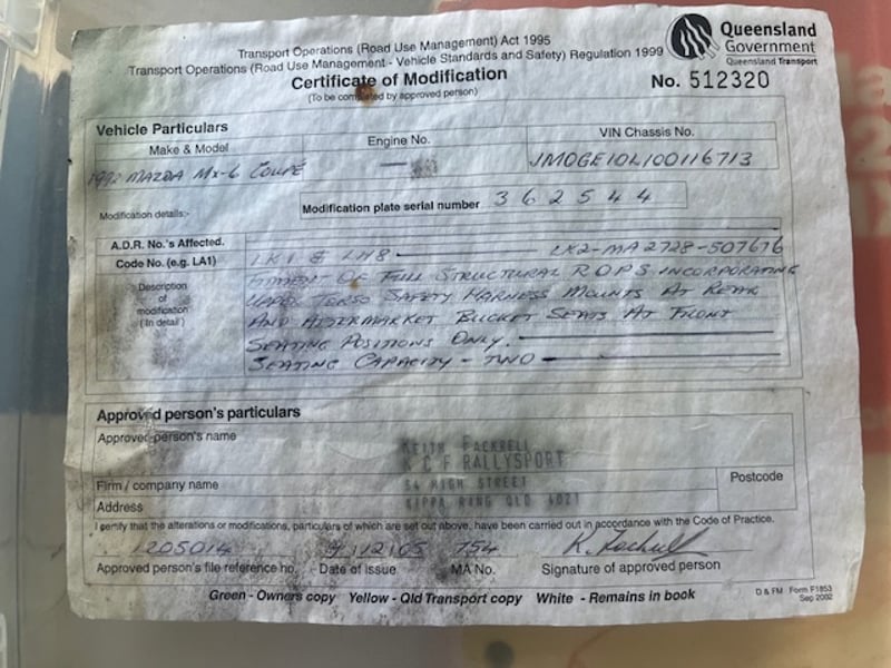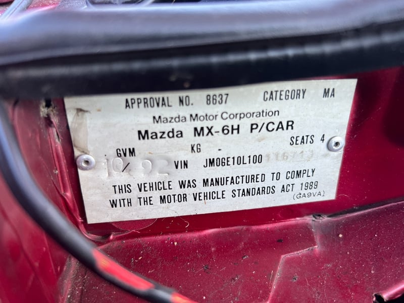 1992 Mazda MX-6Year: 1992Make: MazdaModel: MX 6 - GEEngine: 2.5L V6Transmission: 5-speed manualOdometer Indicated: 245284Engine Number: KL283264VIN: JM0GE10L100116713Description/Extras: Roll Cage, Shift-Light, Bucket Seats, 5 Point Harness, Race Tyres, Fire Extinguisher, Battery Isolation, Bigger Brakes, Exhaust, New Bosh fuel pump, Lokker front diff from England, 2ltr surge tank for fuelBalanced and Blue printed and set up by Bob Remano in Cleveland Heavily Modified MX 6 In great condition for AgeSold UnregisteredSold as isKey#36 MackayLocation: #MACKAYContact Kyle Haywood | Ph 0487 020 888 | [email protected]Holding Yard 3/263 Connors Road, Paget , MACKAY QLD, Australia