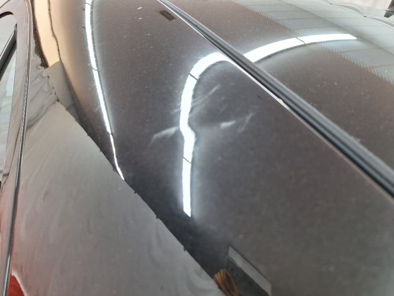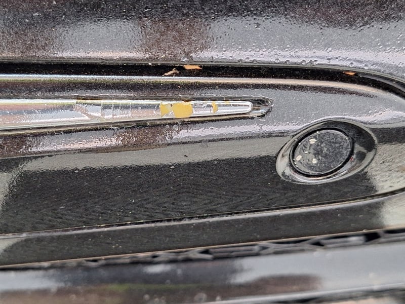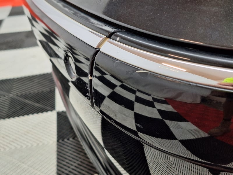 The black paint holds reasonable depth across the body panels, though it shows the patina consistent with 151,335 kilometres of genuine use. Minor clear coat failure is visible on the bonnet leading edge, and light surface corrosion marks the door trim in places. The panels sit straight with no evidence of major accident repair, and the gaps remain even throughout. The headlight lenses show light tinting from age and UV exposure, a common trait on W211s of this vintage.