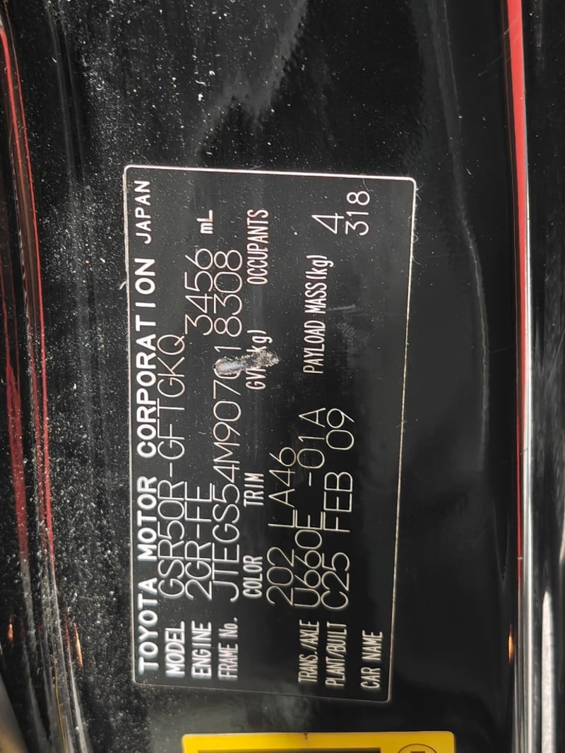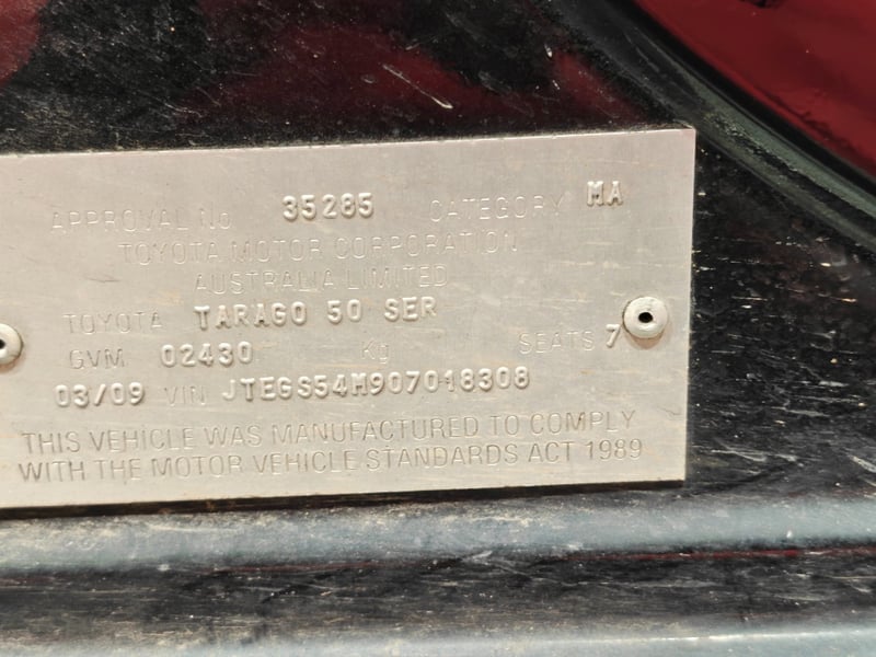 2009 Toyota Tarago GSR50R Ultima Year: 2009 Make: Toyota Model: Tarago Series: GSR50R Badge: Ultima Body: 5-Door Wagon Drive Type: Front wheel drive Odometer: Indicating 258,273 Kilometers Engine: 3.5 Petrol Transmission: Automatic Colour: Black Seats: 7 Description/extras: Air Conditioning, Power windows, SRS, Power seats, Tinted windows, Cruise control, Leather interior, Alloy wheels, AUX / USB, Central locking, CD player, Log books/Owners manual. 2 x Keys & Service Reciepts, and books Ware with age, and whistle sound when starting car, inspection recommended. VIN: JTEGS54M907018308 ENG No: 2GR0637367 Sold unregistered (Key #B40) Lloyds stock #232573+1