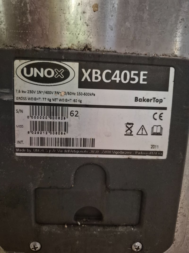 Unox commercial combi oven, power cable missing, see photos Model: XBC405E Serial number: 0000000000628 Dimensions: H: 77cm W: 86.5cm D: 91cm