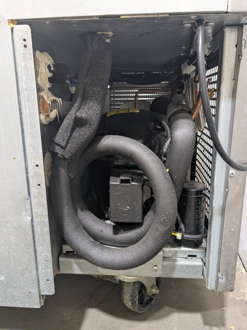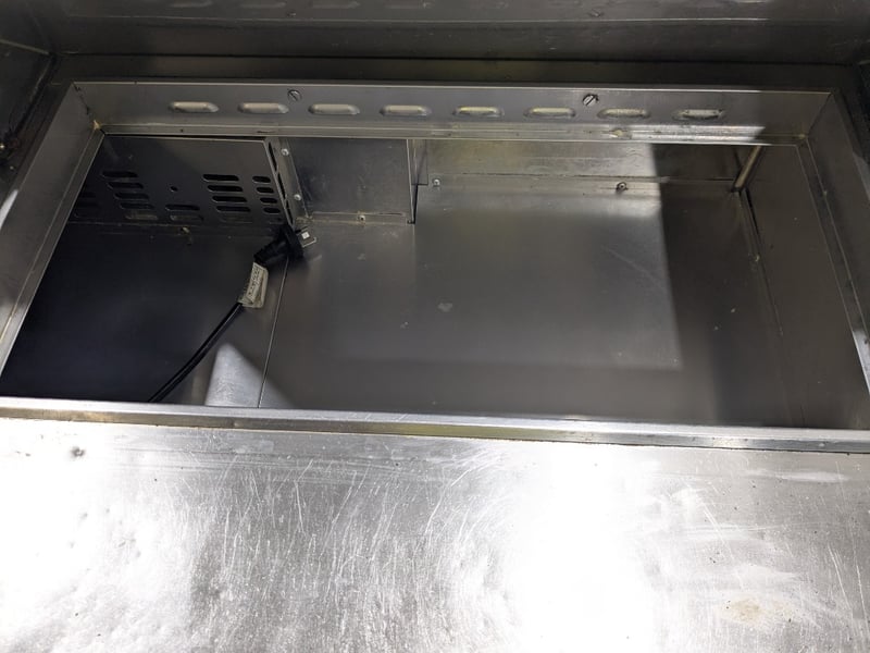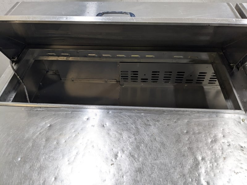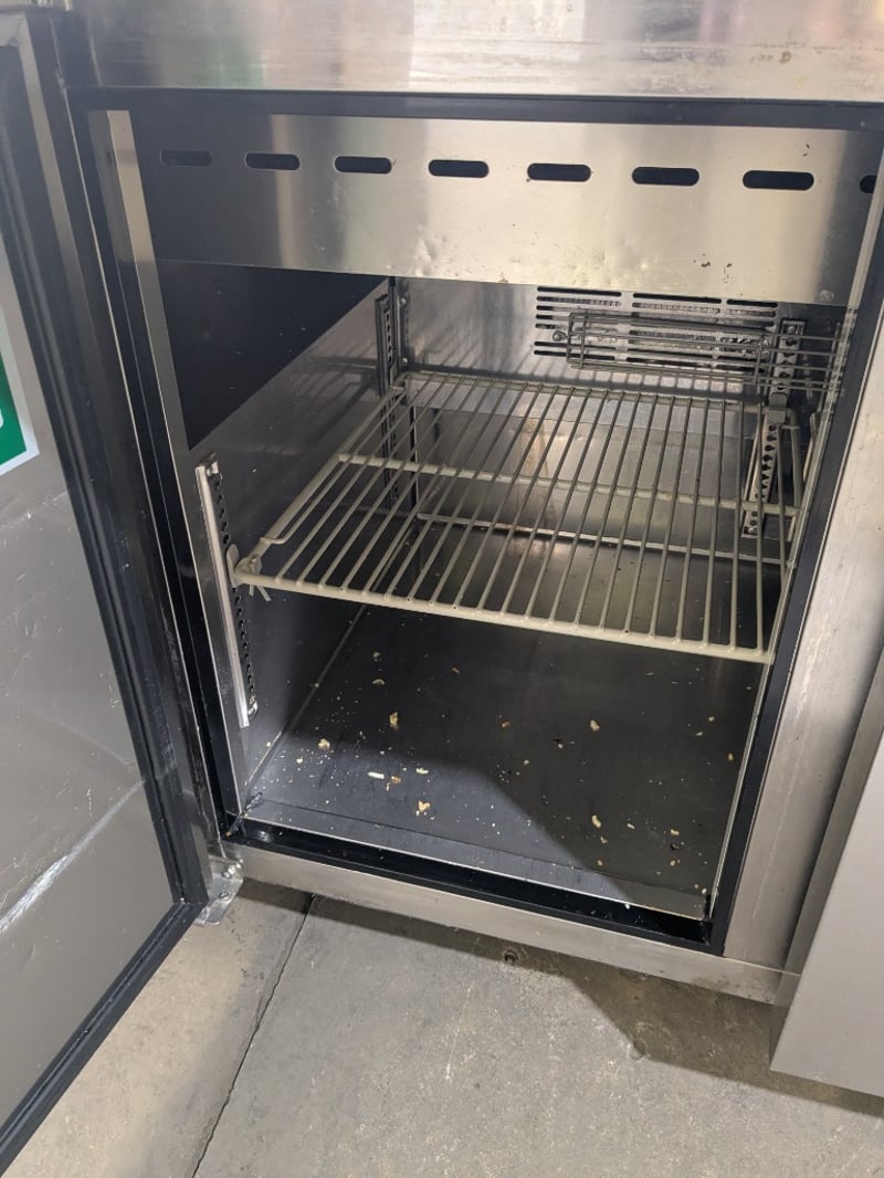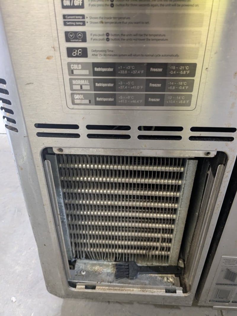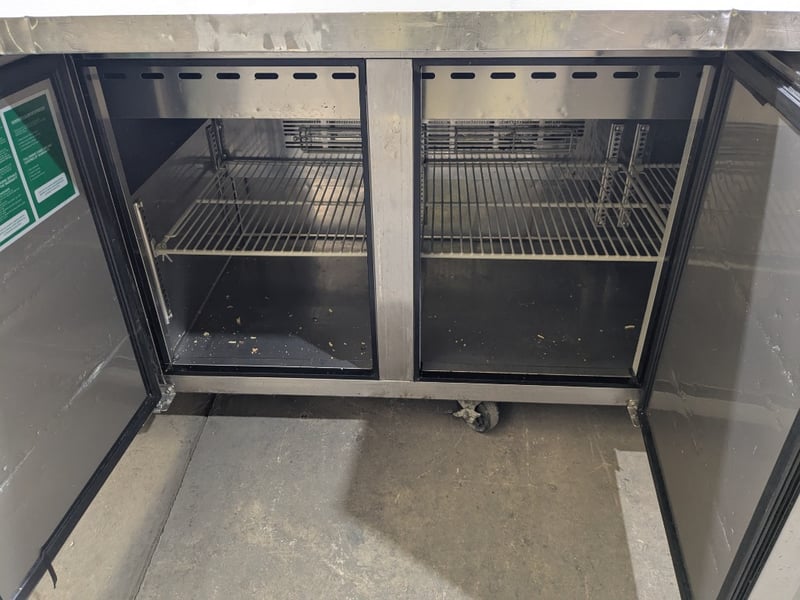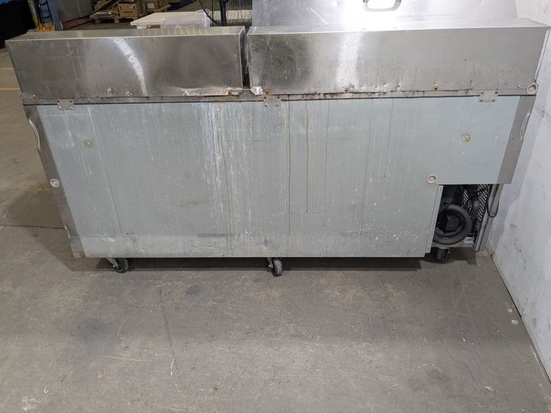 Turbo Air refrigerator, stainless steel, on mobile castors,3 doors. Dims: 183 x 77 x 109cmNote: untested, signs of wearn