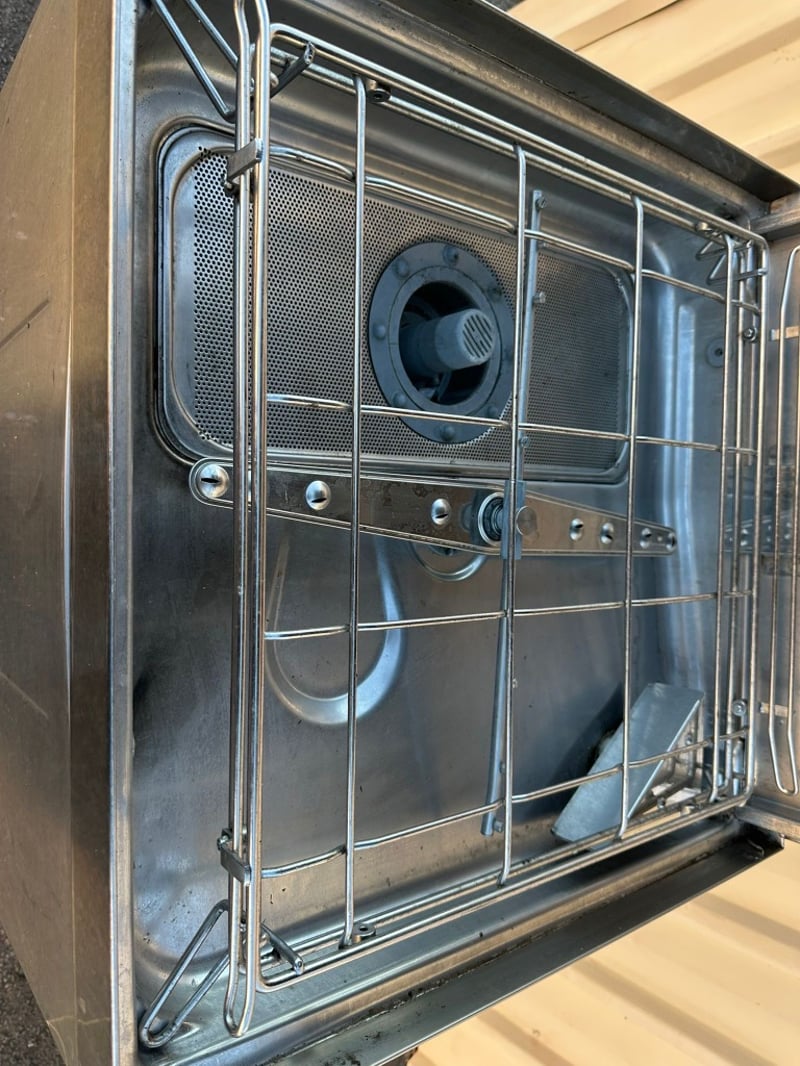 Smeg touch pad pass thru dishwasher stainless steel construction Dims: 80 x 62.5 x 160cmNote : untested,signs of wear