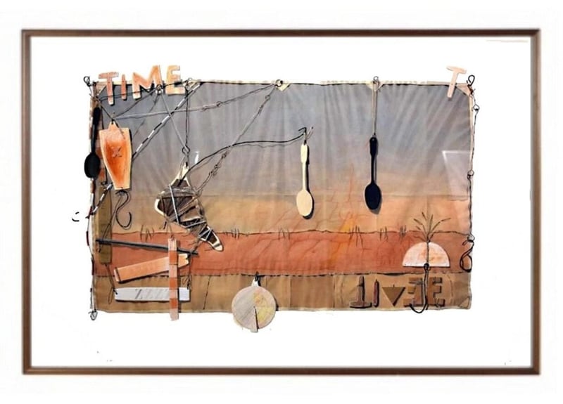 TIM STORRIER Original Mixed Media On Paper Title: Time Image Size: 101cm x 152cm Condition: Good - Refer To Images Under Perspex CROSSDOCK 163146+1