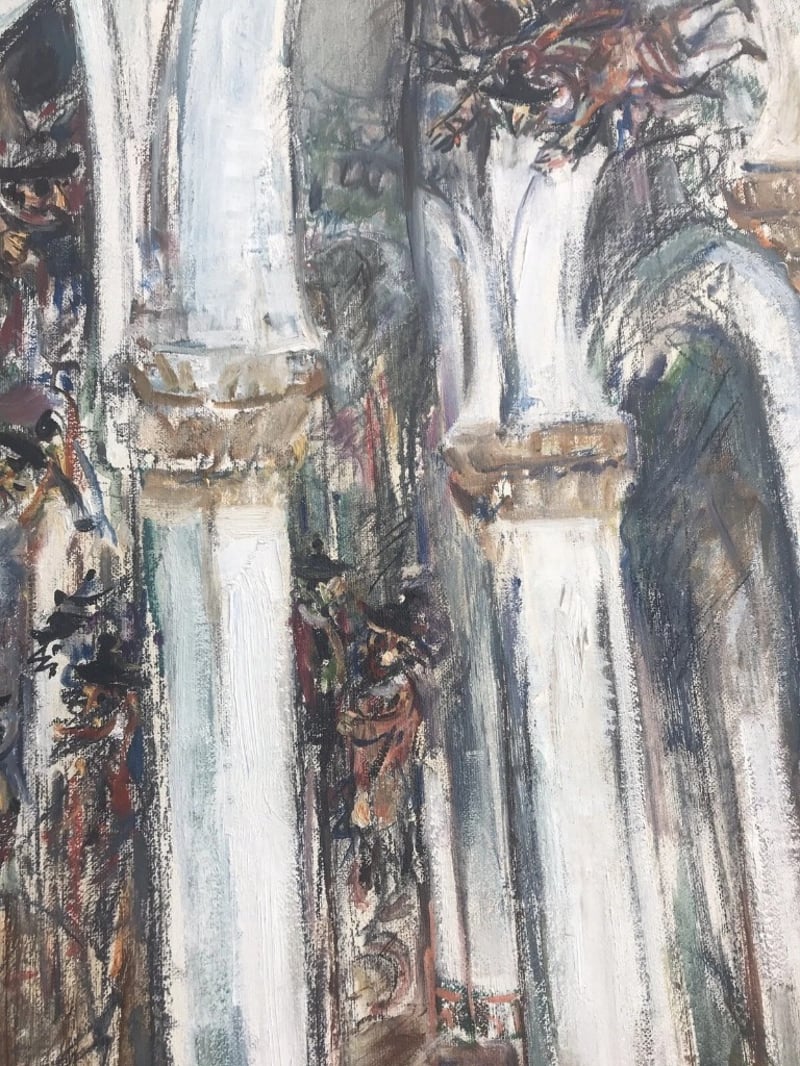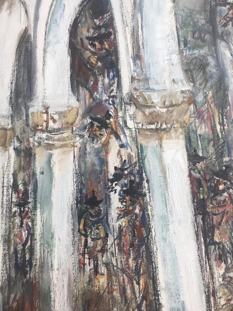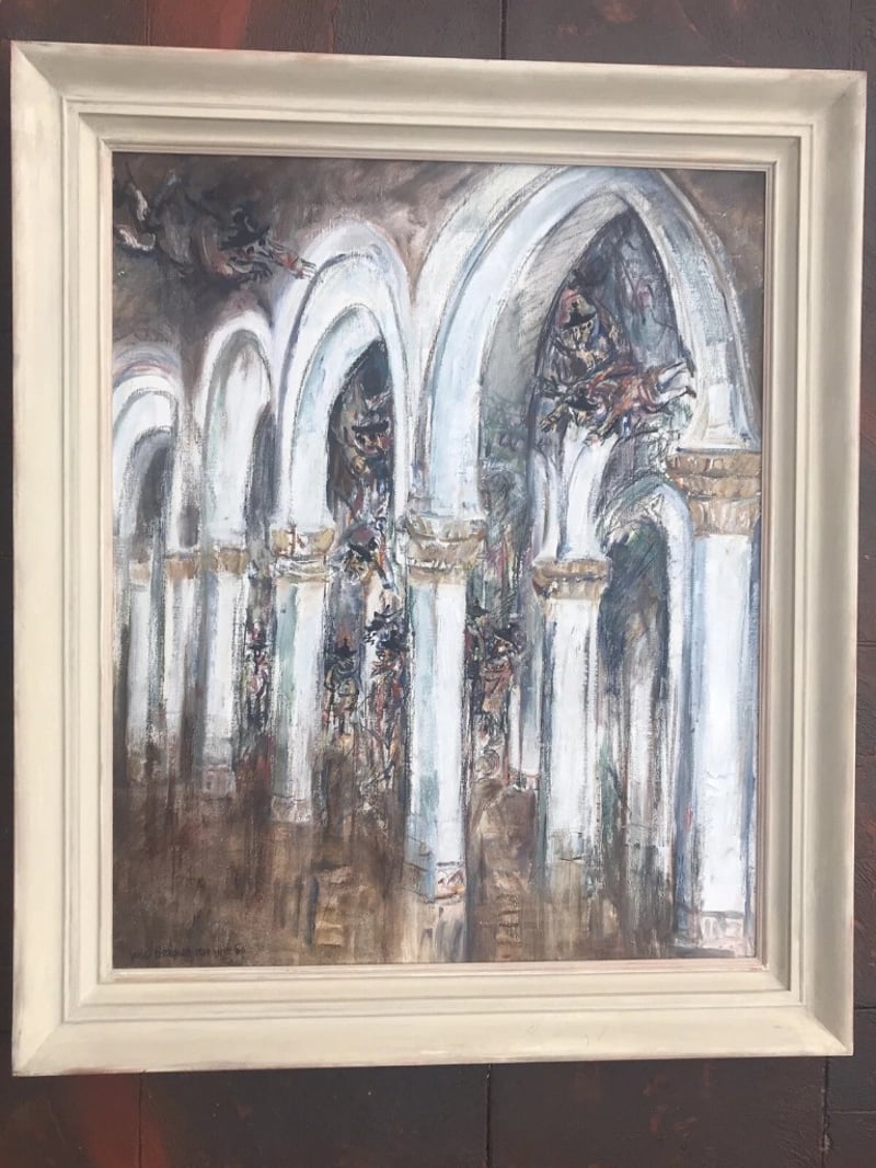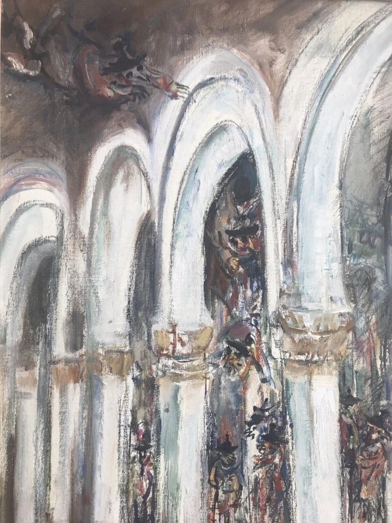This Painting Is From The Series The Bird’S Beak Hagaddah.The Scene Is Inside The ,Once Church,Once Synagogue,Now A Museum In Toledo Spain And Angels(?)Flying Beings(?) Are Hovering Inside This Beautiful Historical Building.