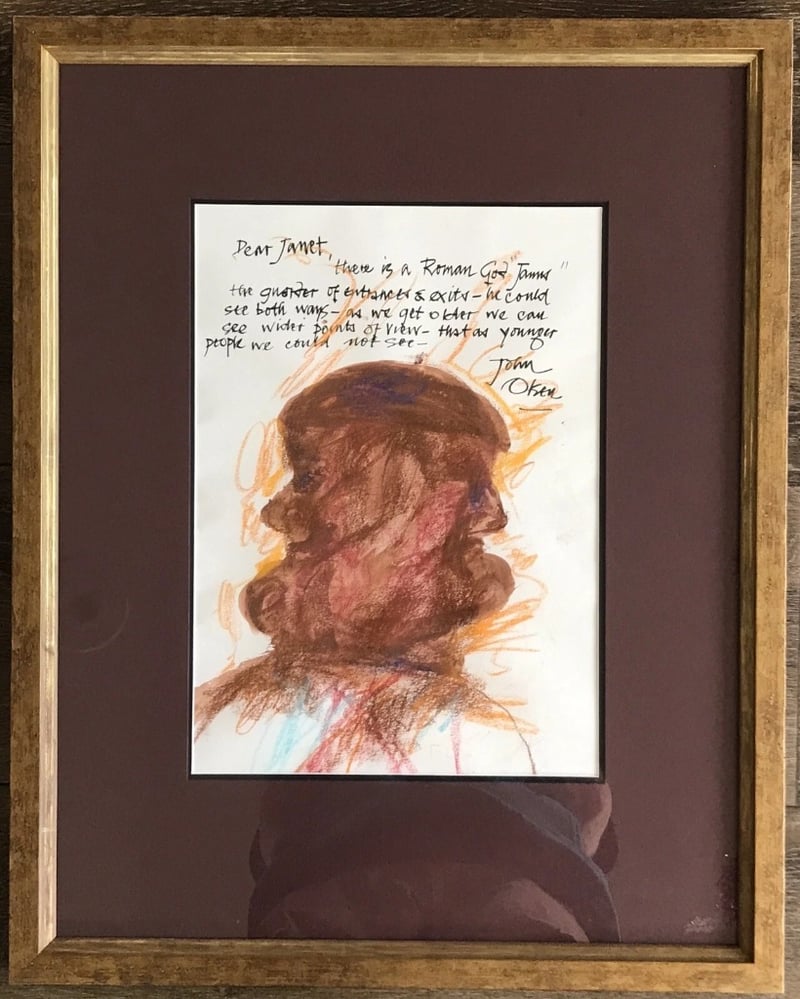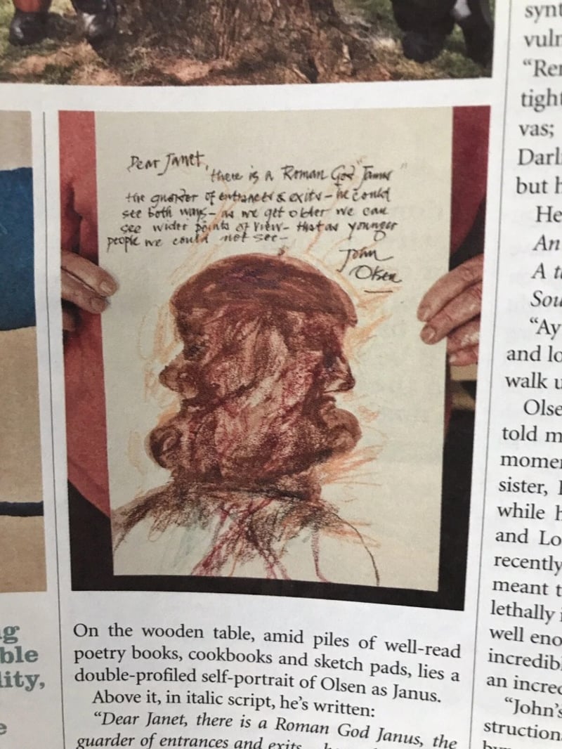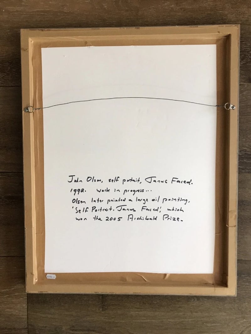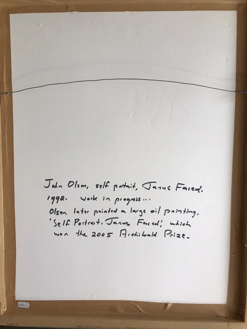 JOHN OLSEN Original Mixed Media On Paper Title: Self-Portrait-Janus Faces Image Size: 40cm x 28cm Frame Size: 67cm x 53cm Condition: Good - Refer To Images Reproduced In Good Weekend December 10 2011 It Is A Working Artwork ,India Ink,Crayons And Pastels On Paper. From The Collection Of Janet Hawley. CROSSDOCK 163146+6