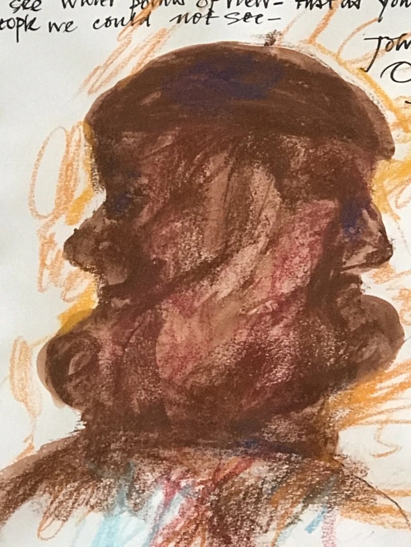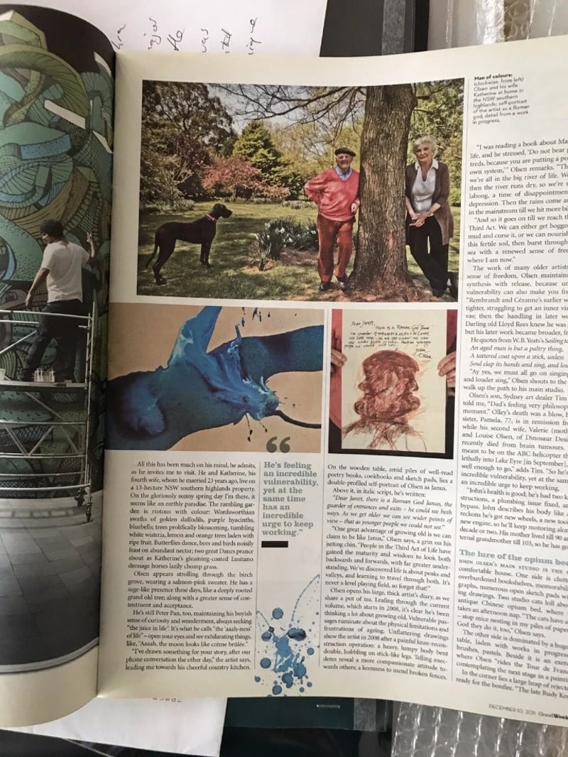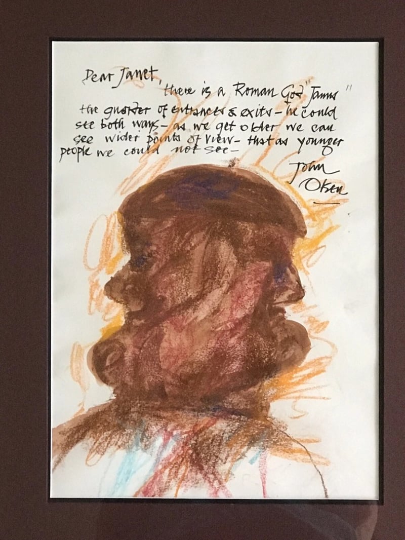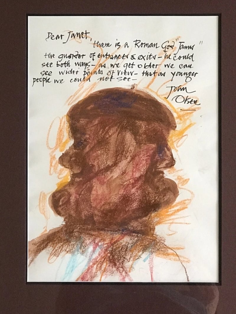 JOHN OLSEN Original Mixed Media On Paper Title: Self-Portrait-Janus Faces Image Size: 40cm x 28cm Frame Size: 67cm x 53cm Condition: Good - Refer To Images Reproduced In Good Weekend December 10 2011 It Is A Working Artwork ,India Ink,Crayons And Pastels On Paper. From The Collection Of Janet Hawley. CROSSDOCK 163146+6