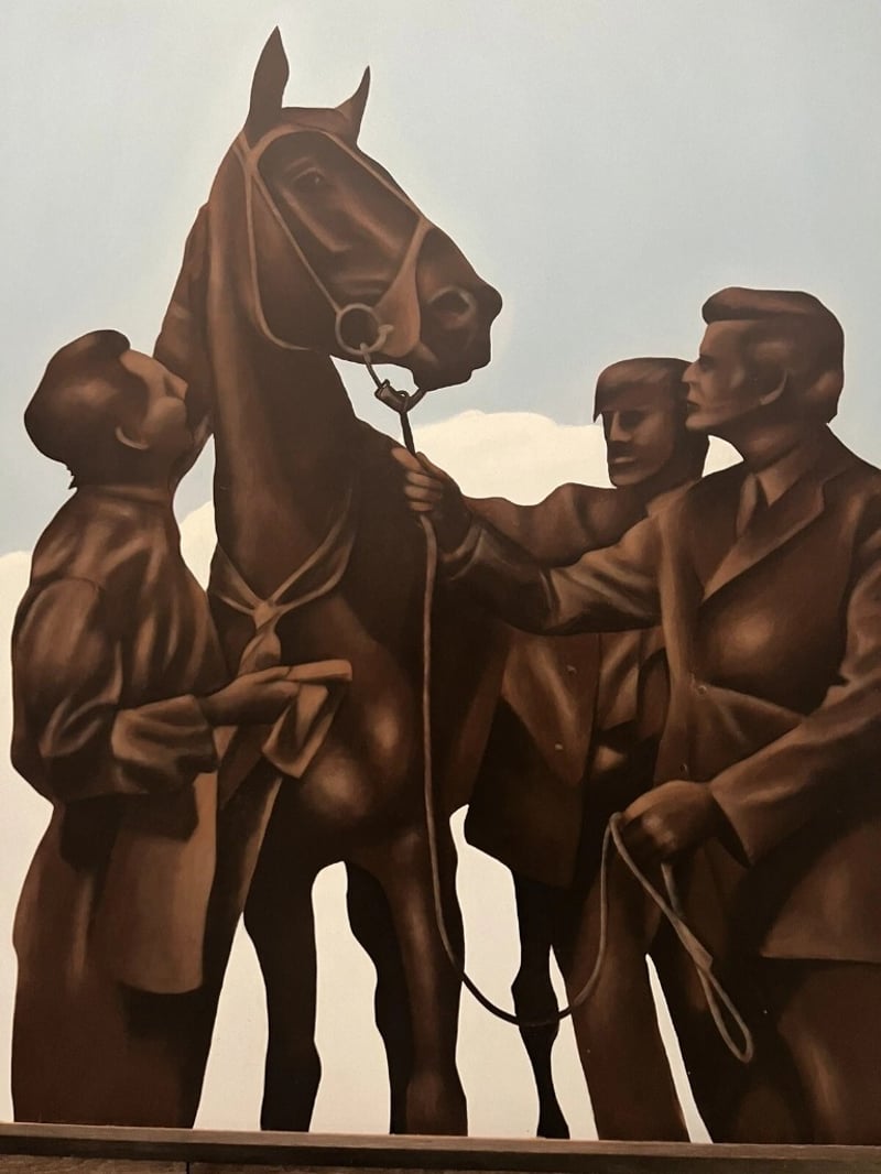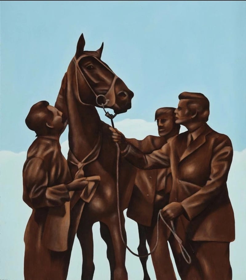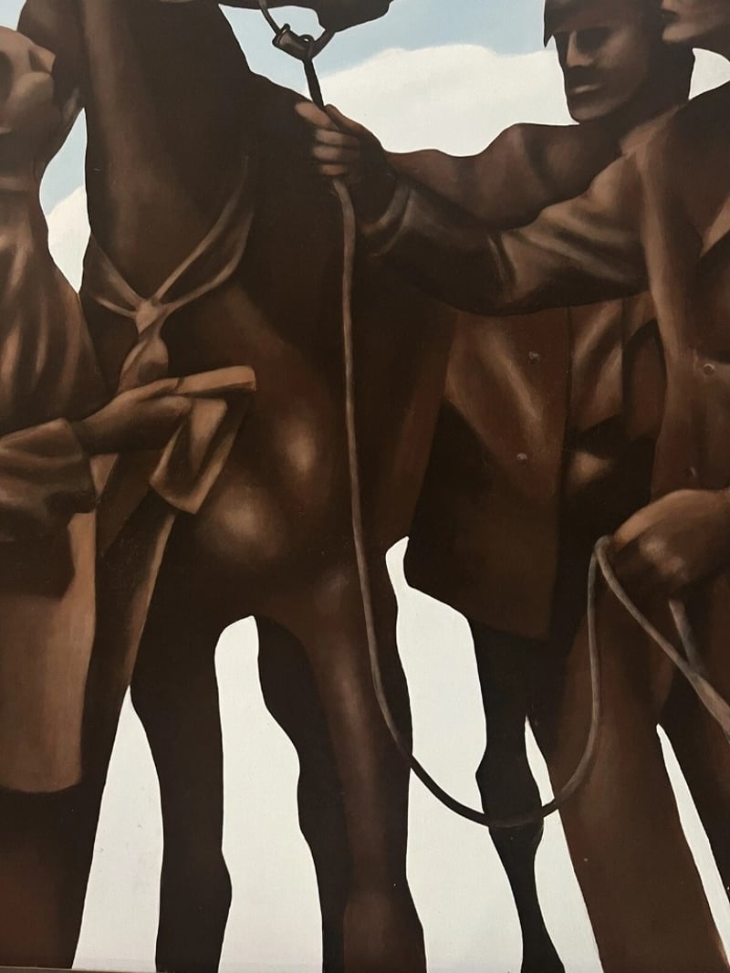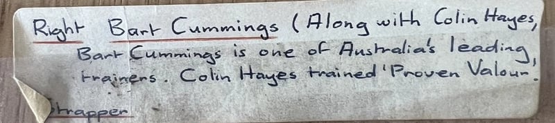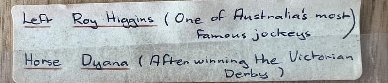 IVAN DURRANT Original Oil Painting On Composition Board Title: The Winner Image Size: 122.5cm x 107cm Frame Size: 128cm x 111cm Condition: Good - Refer To Images The Name Of The Horse Is “Dyana Won Victorian Derby,Caulfield Cup,Melbourne Cup Plusw.A .Derby ,Perth Cup Etc. -Left Roy Higgins (One Of Australia’’S Most Famous Jockey Horse Dyana (After Winning The Victorian Derby) -Right Bart Cummings CROSSDOCK 163146+15