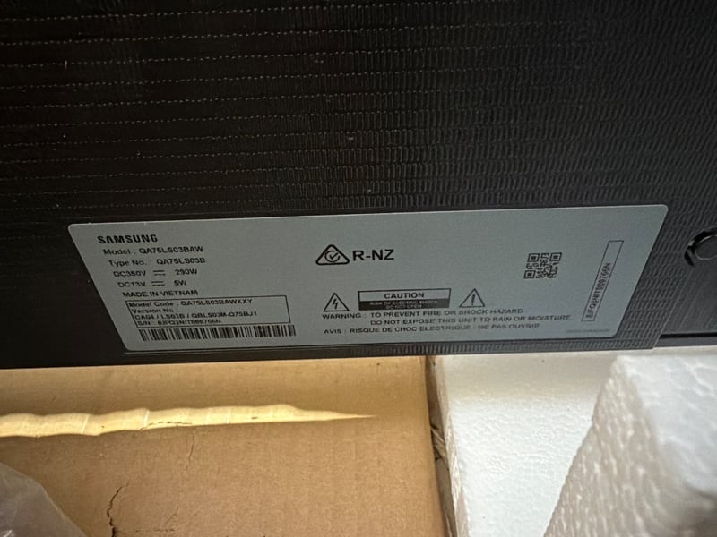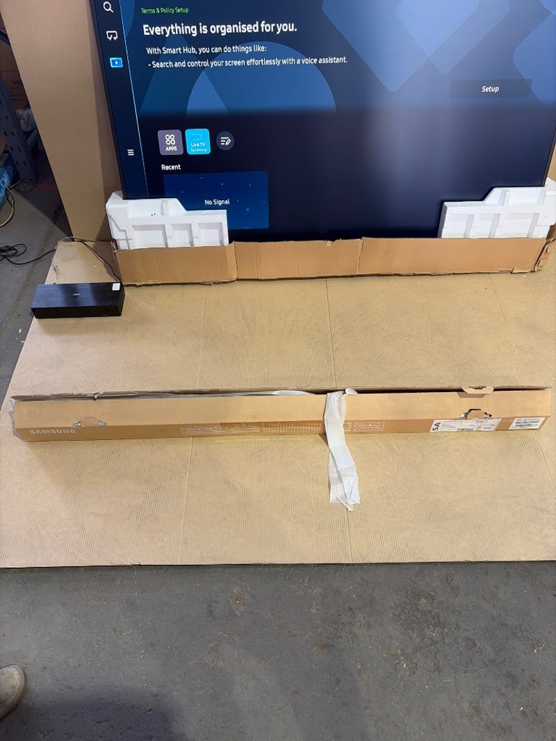 Note: No Remote, Includes Legs, Includes Samsung 75” The Frame.