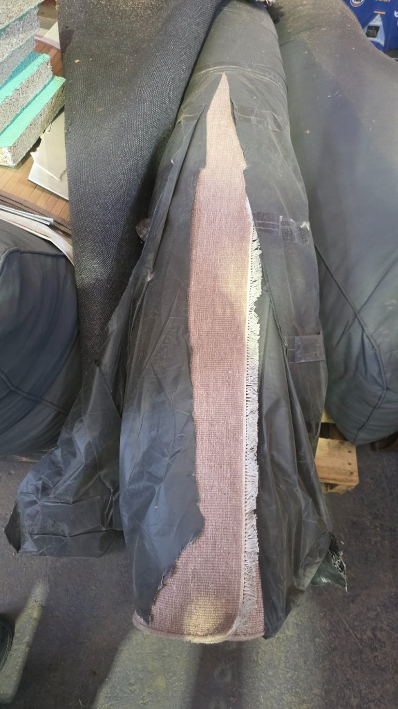 Fabric day couch including 2x carpets and more Sold as lot