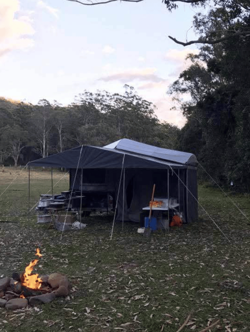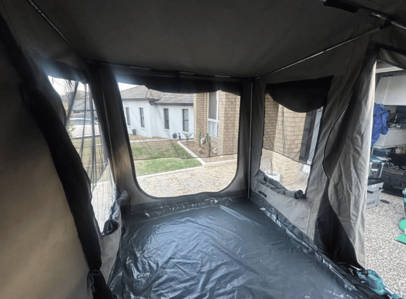 Camper trailer comes with main camper tent plus fully enclosed annex. Plus an additional third room attached to the back fully enclosed.