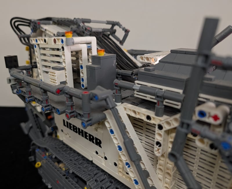 Highly Detailed Lego Technic Construction Of A Liebherr 9800 Tracked Excavator, Featuring Motorised Hydraulic Arm With Articulated Bucket, Functional Track Drive System, Realistic Cabin With Operator Controls, Pneumatic Hose Routing, And Authentic Liebherr Branding. Set Comes Pre-Built, May Contain Missing Pieces. Manual And Box Not Included