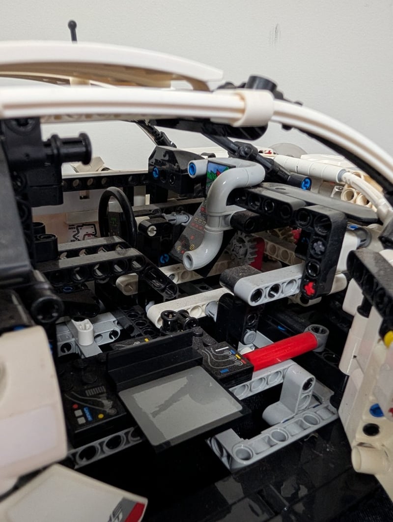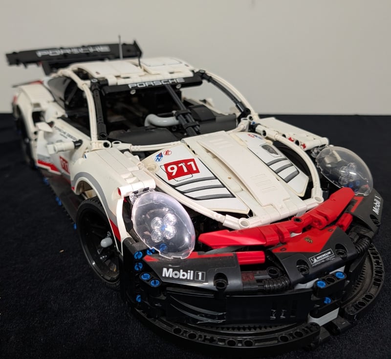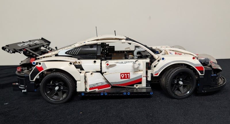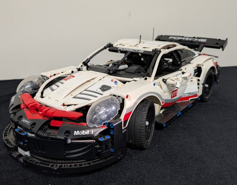 Highly Detailed Lego Technic Construction Model Featuring A White And Red Porsche 911 Rsr With Authentic Racing Livery. The Model Showcases Exceptional Engineering With Functional Opening Doors, Detailed Cockpit Interior, Articulated Suspension System, And A Comprehensive Engine Bay With Visible Mechanical Components. Set Comes Pre-Built, May Contain Missing Pieces. Manual And Box Not Included
