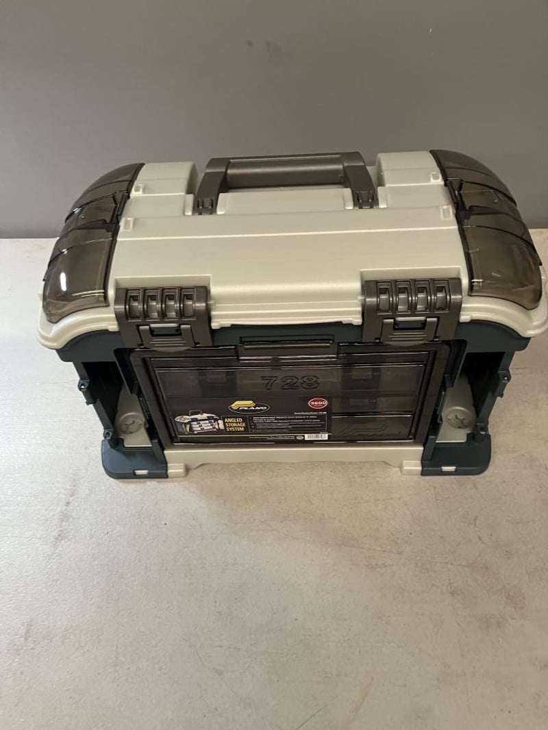 RRP $219 Plano Elite Series Angled System 3600 - Blue/Silver - REFURBISHED GOOD/FAIR CONDITION (2 FRONT SIDE DOORS MISSING REFER TO PHOTO)