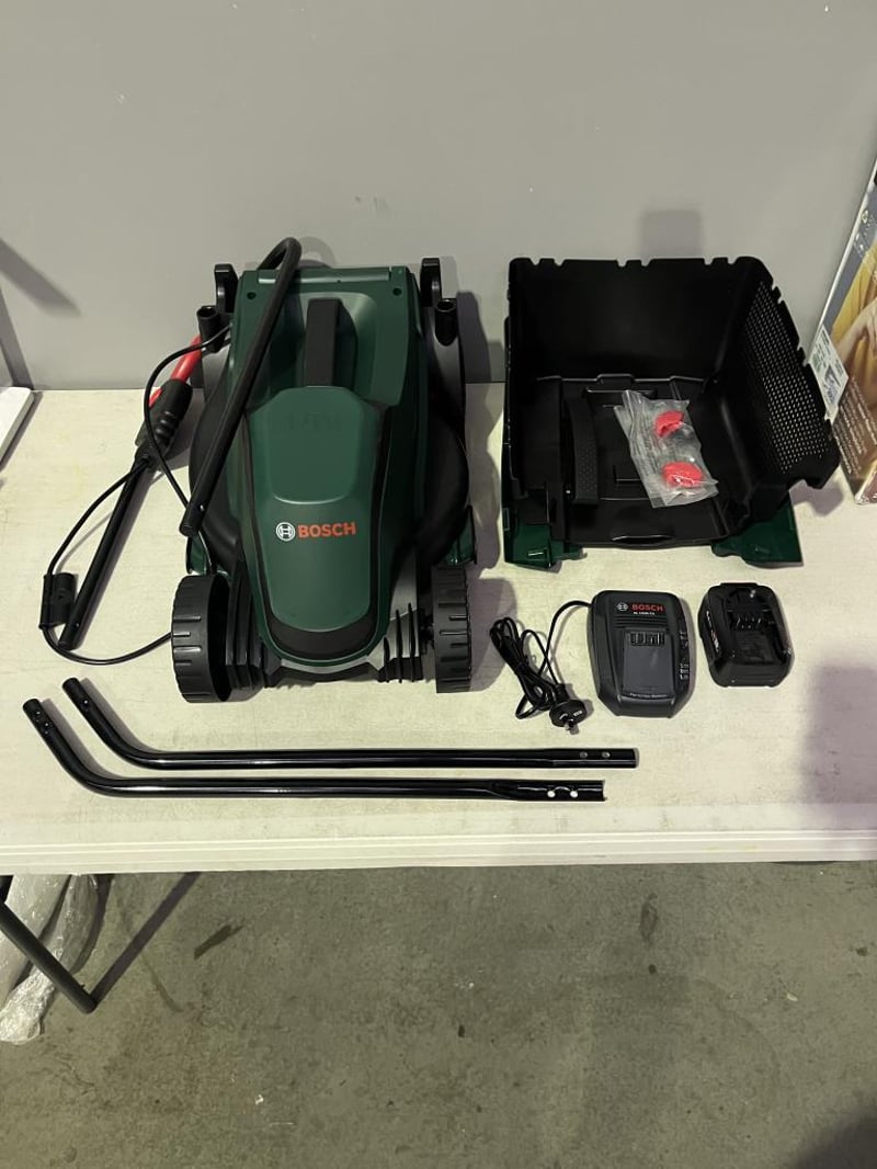 RRP $339 Bosch Home & Garden 18V Cordless Lawn Mower With 1 x 4.0Ah Battery & Fast Charger - REFURBISHED WORKING - ITEM INSIDE IS EXCELLENT CONDITION (ORIGINAL BOX DAMAGED IN TRANSIT)