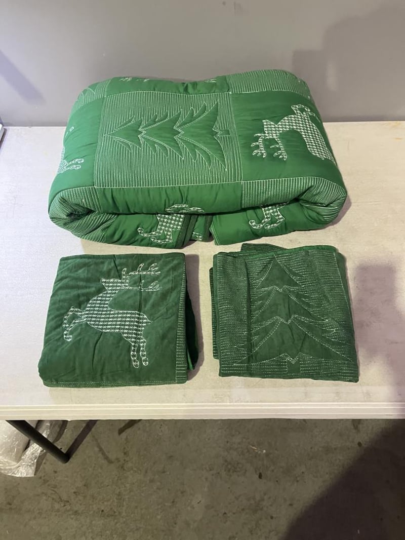 RRP $199 Grassix Christmas Quilt Set King Size 3 Piece Velvet Quilt Set with Xmas Tree Reindeer Pattern (108"x96") - Green - REFURBISHED WORKING EXCELLENT CONDITION