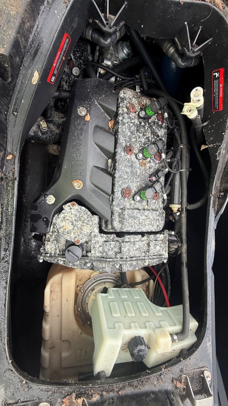 Offered in salvage condition, this 2013 Benelli 3BR personal watercraft presents an opportunity for repair, refurbishment or parts recovery. Built on a fibreglass V-hull design and finished in black and white, the 3BR model is known for its compact recreational layout and performance capabilities when in operational condition. This example shows clear signs of corrosion and prolonged environmental exposure and is being sold as a project unit with inspection strongly recommended prior to purchase or use.