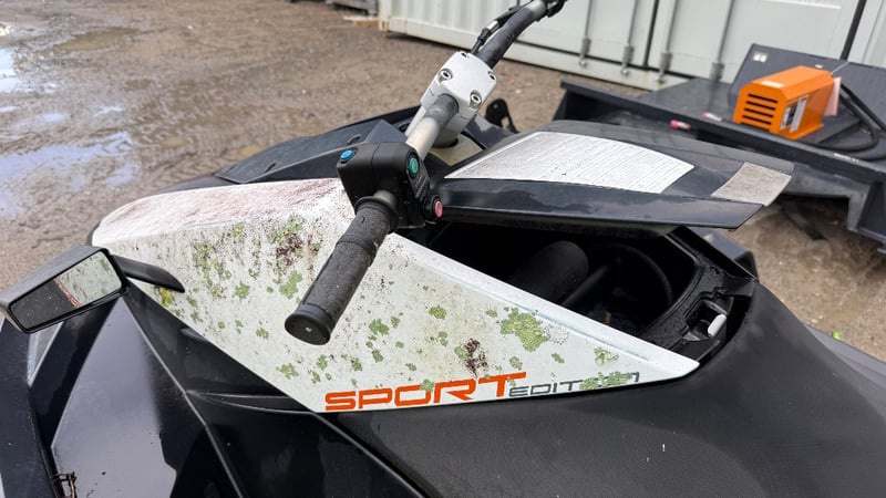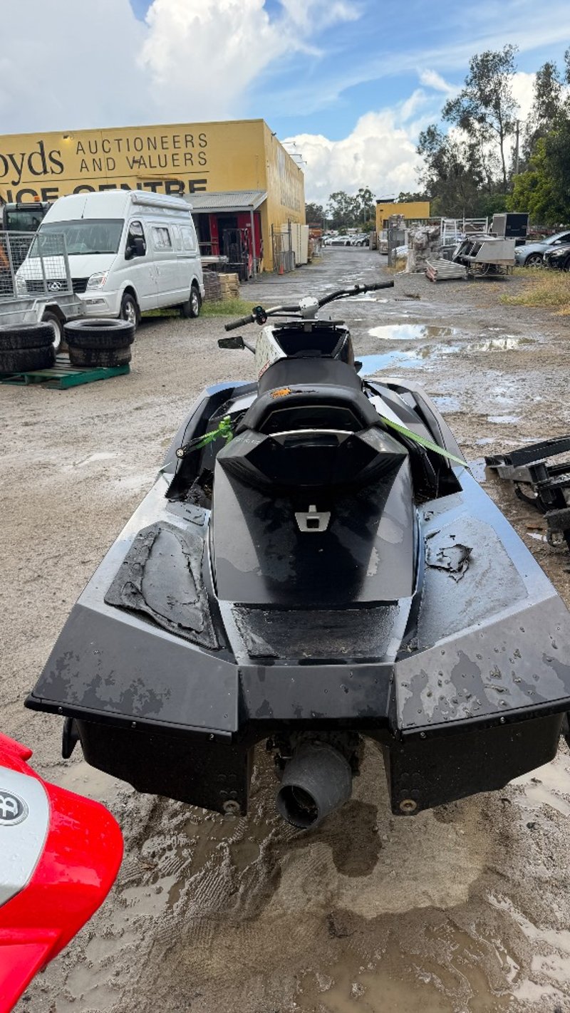 The craft is fitted with a jet drive propulsion system and standard handlebar controls typical of personal watercraft in this class. Signs of cosmetic wear and environmental exposure are present across the hull and exposed surfaces, consistent with storage and use over time. The overall mechanical and operational condition is unknown and should be assessed prior to any attempt at commissioning.