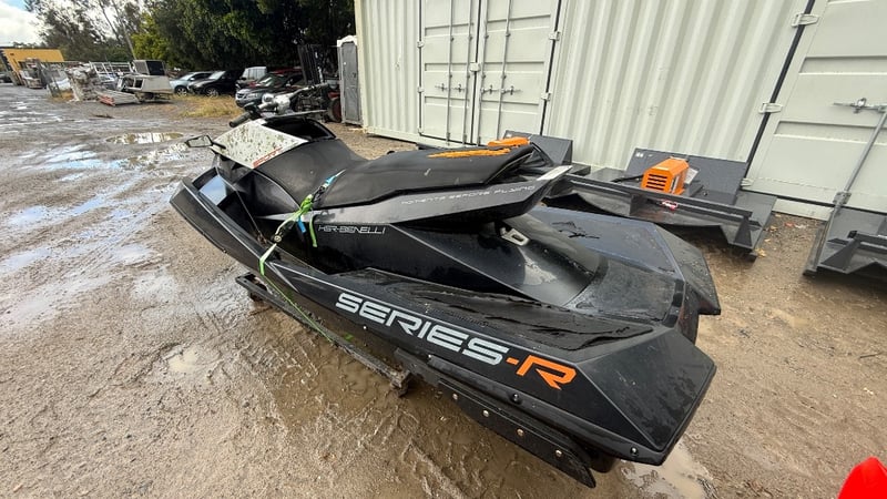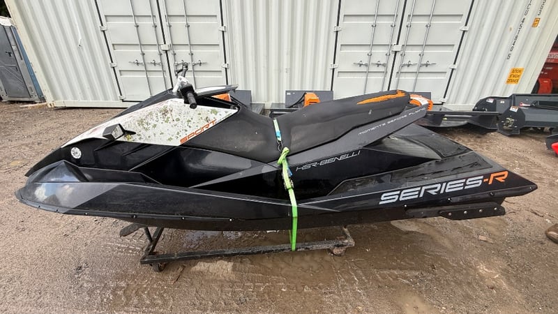 Offered in salvage condition, this 2010 Benelli Sport personal watercraft presents an opportunity for repair, refurbishment or parts recovery. Featuring a fibreglass V-hull construction and finished in black and white, the Benelli Series-R platform is known for its sporty layout and recreational performance when in operational condition. This example shows visible wear and weathering and is offered as a project unit with inspection recommended prior to use.