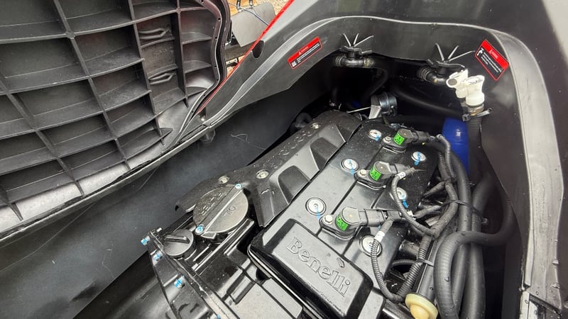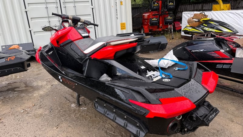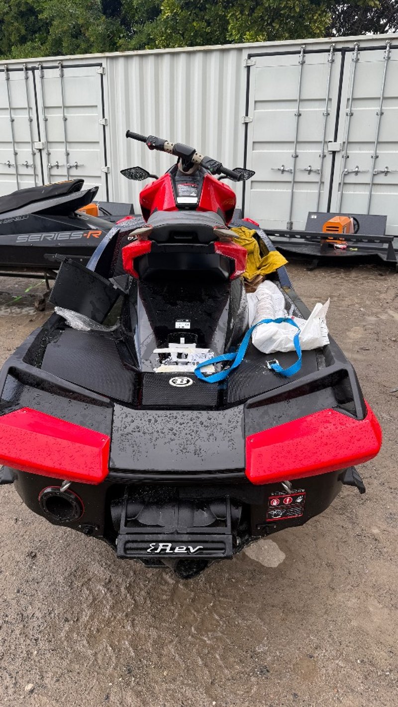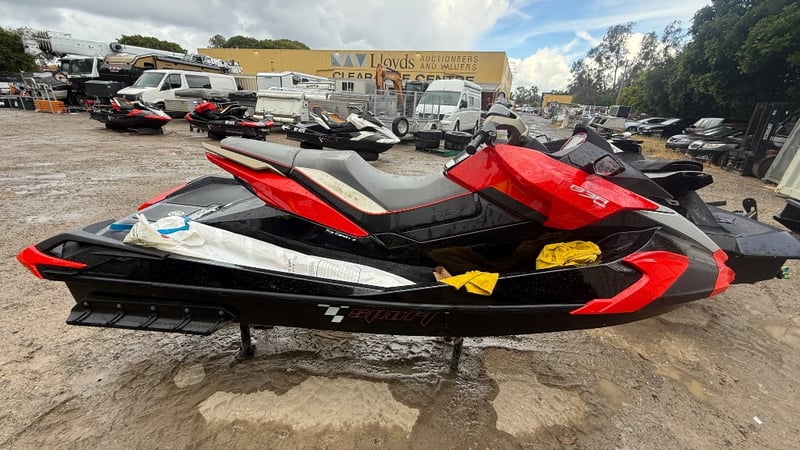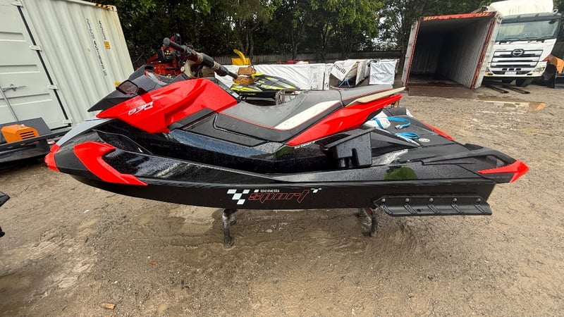 Offered in salvage condition, this 2013 Benelli B3R personal watercraft presents an opportunity for repair, refurbishment or parts recovery. Finished in a striking red and black livery and built on a fibreglass V-hull platform, the B3R model is recognised for its sporty recreational design and responsive handling when in operational condition. This example displays cosmetic weathering consistent with storage exposure and is offered as a project unit with inspection recommended prior to use.
