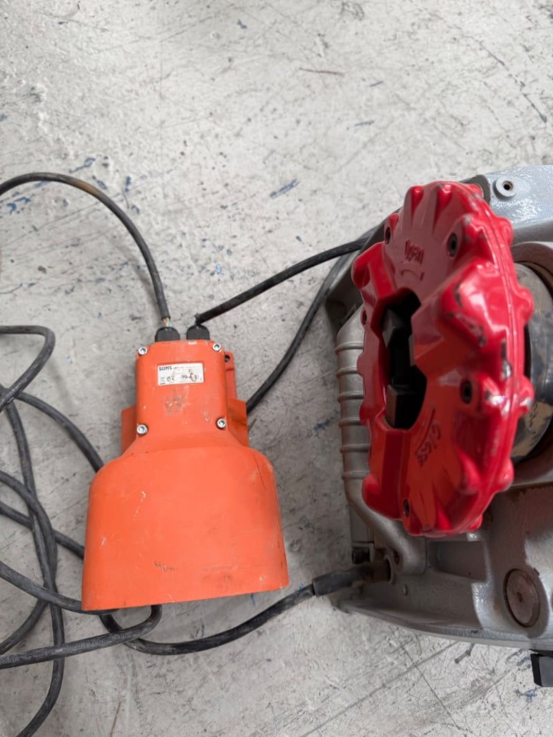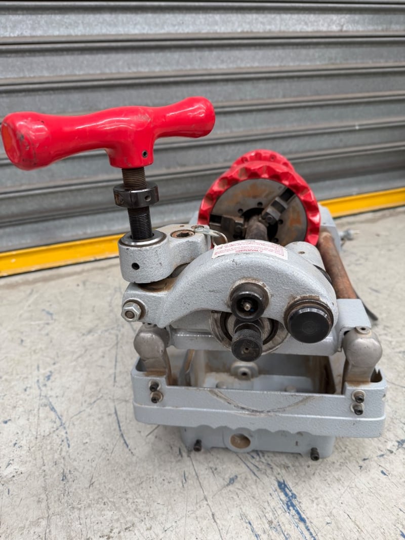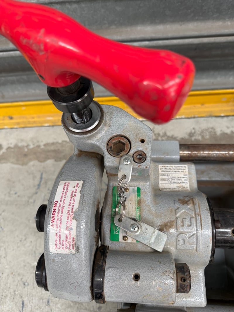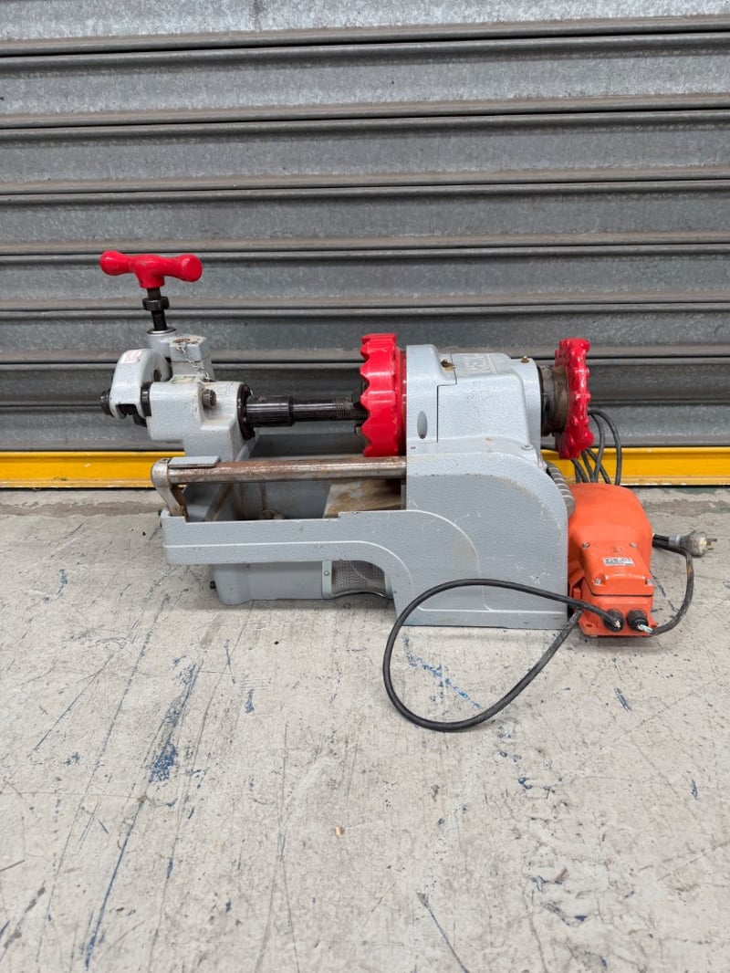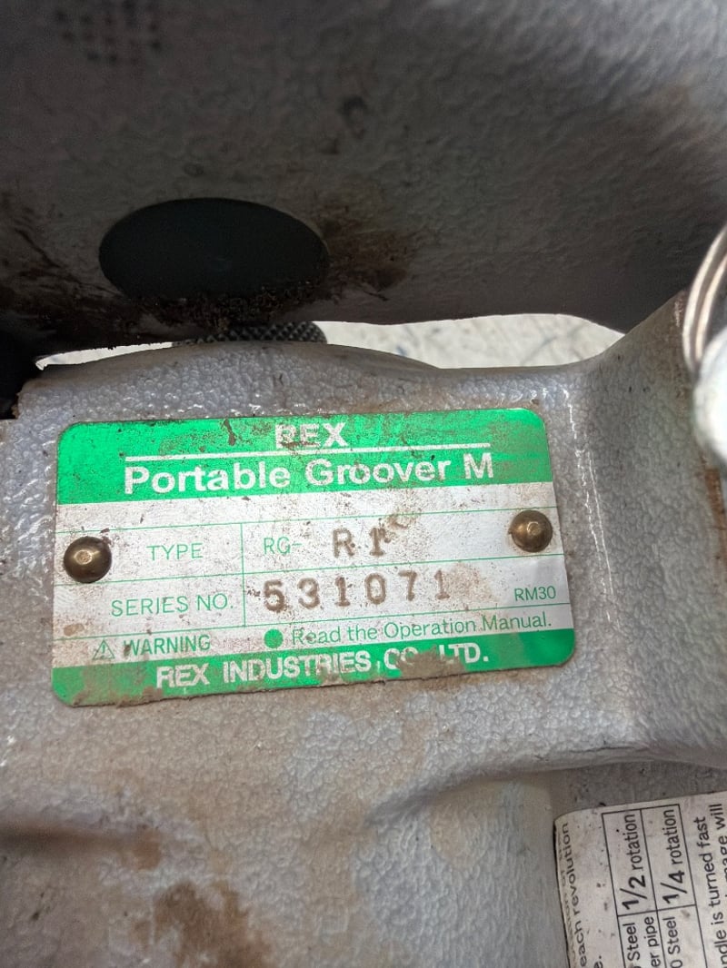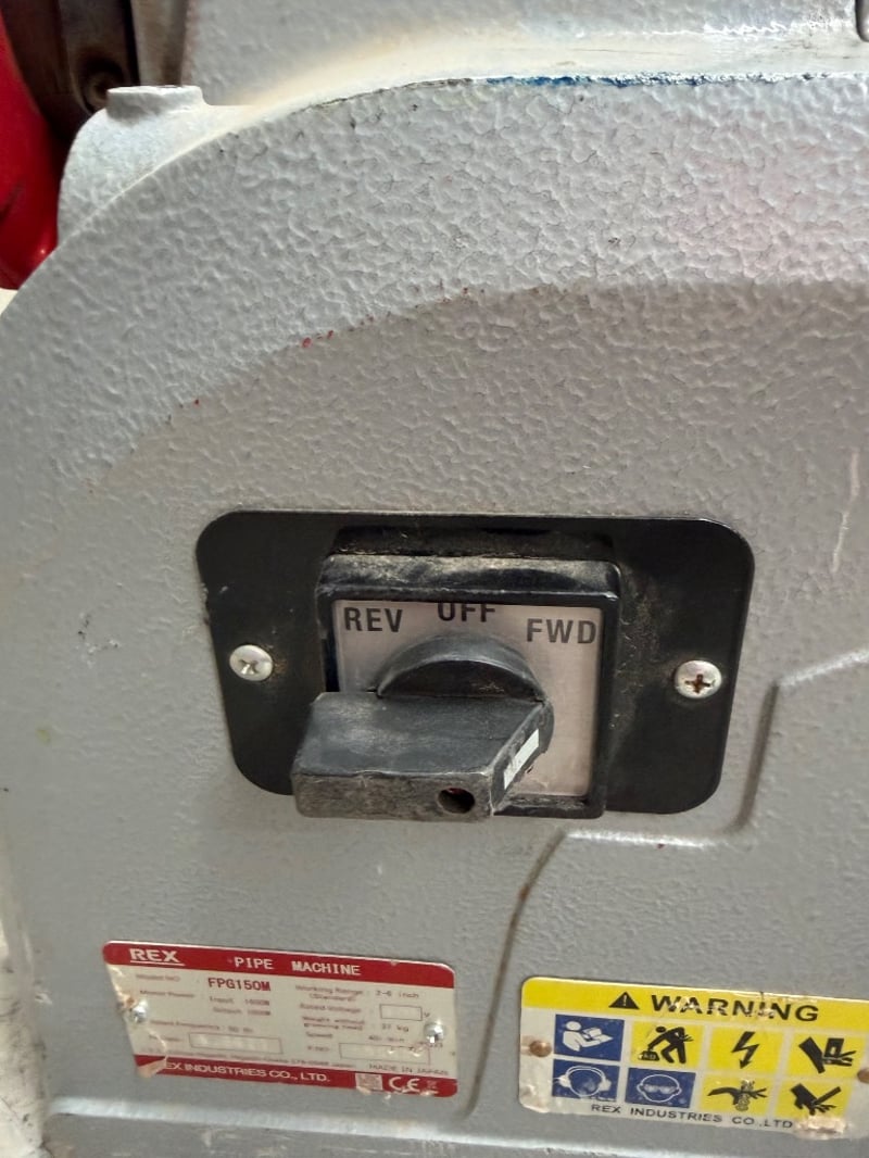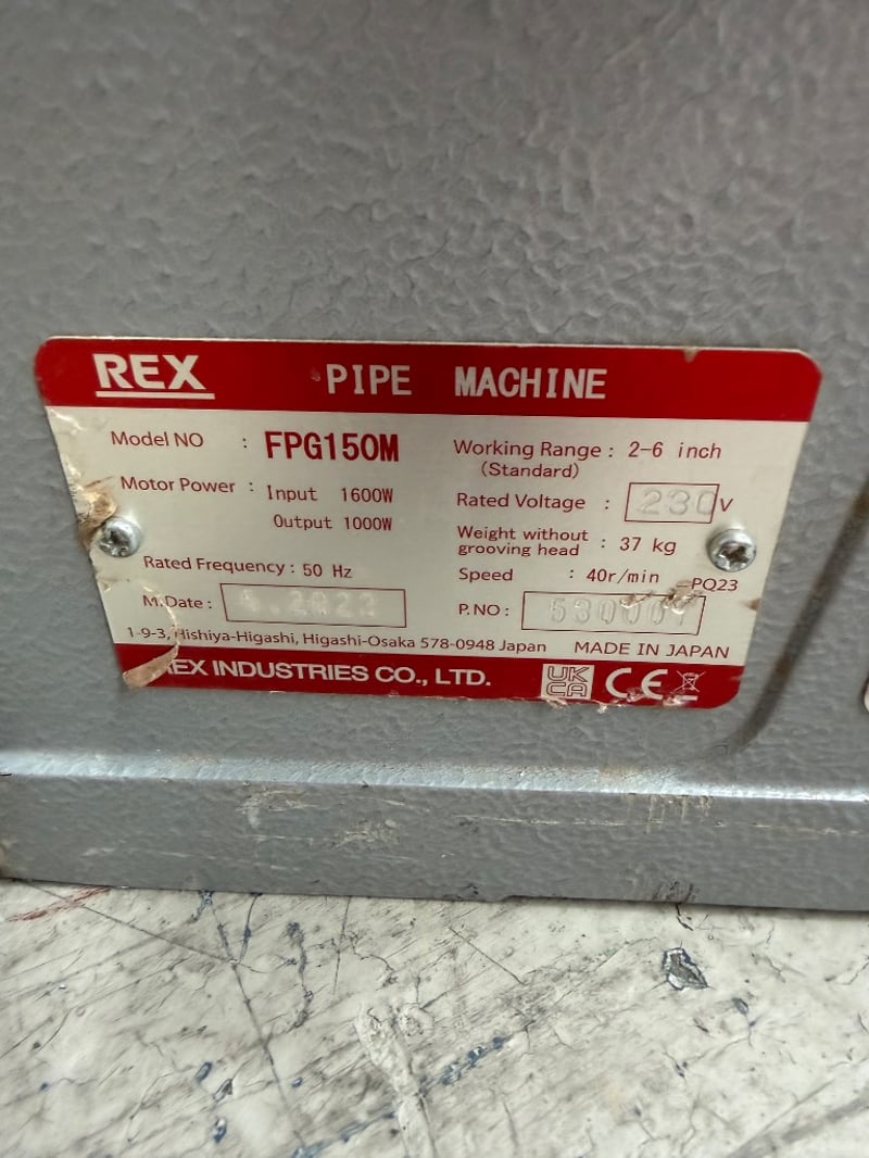 REX FPG150M electric pipe threading machine, Japanese-made portable groover. Features 1600W input/1000W output motor, 50Hz rated frequency, operates on 220V supply. Capable of threading pipes 2-6 inches (standard).