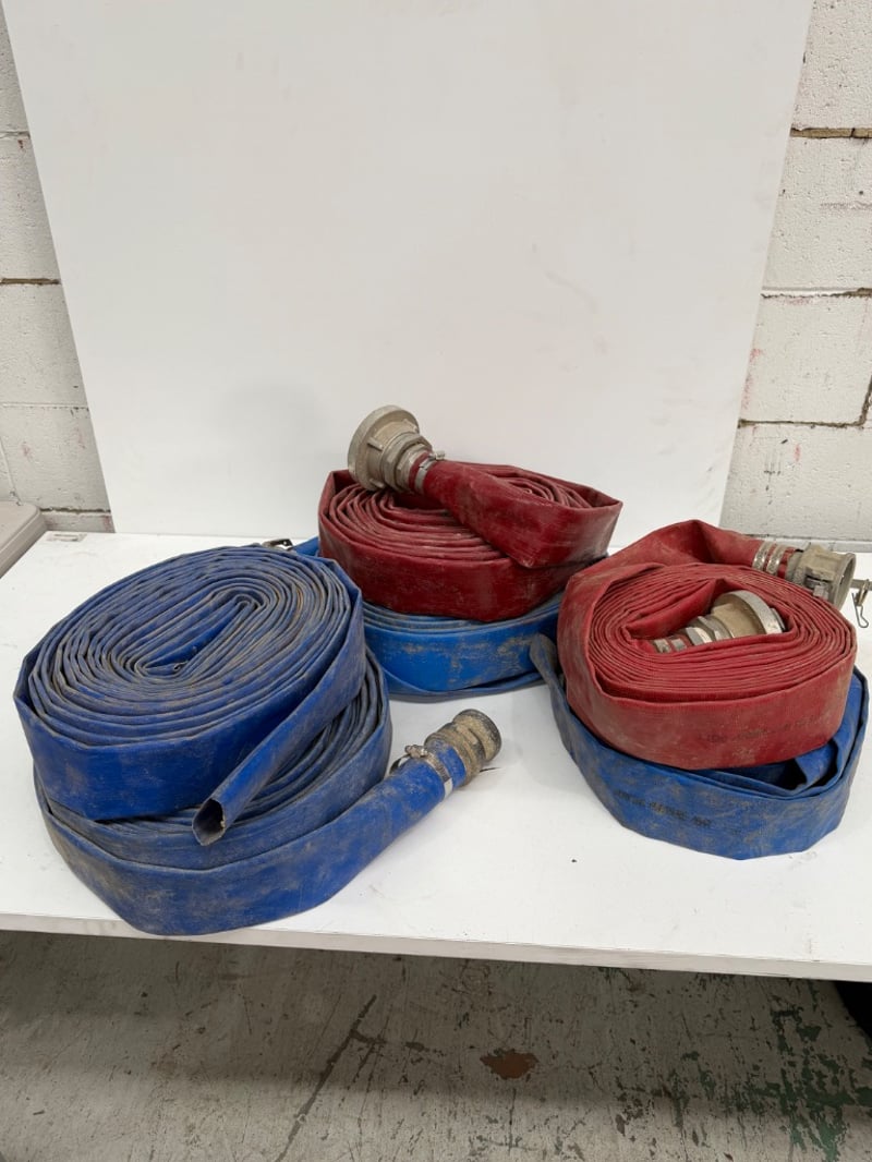 Assortment of Layflat Discharge Hose. The Lot contains 6 hoses. Untested, sold as is. SOLD AS LOT