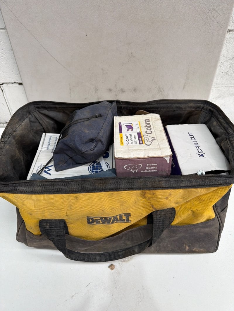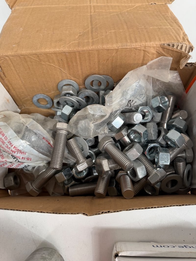 Assorted box of plumbing fittings and tools. SOLD AS LOT
