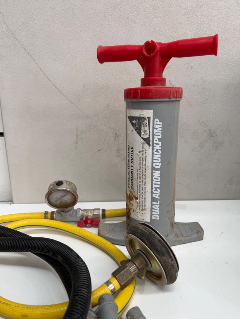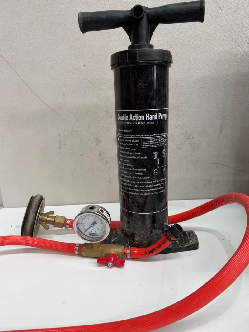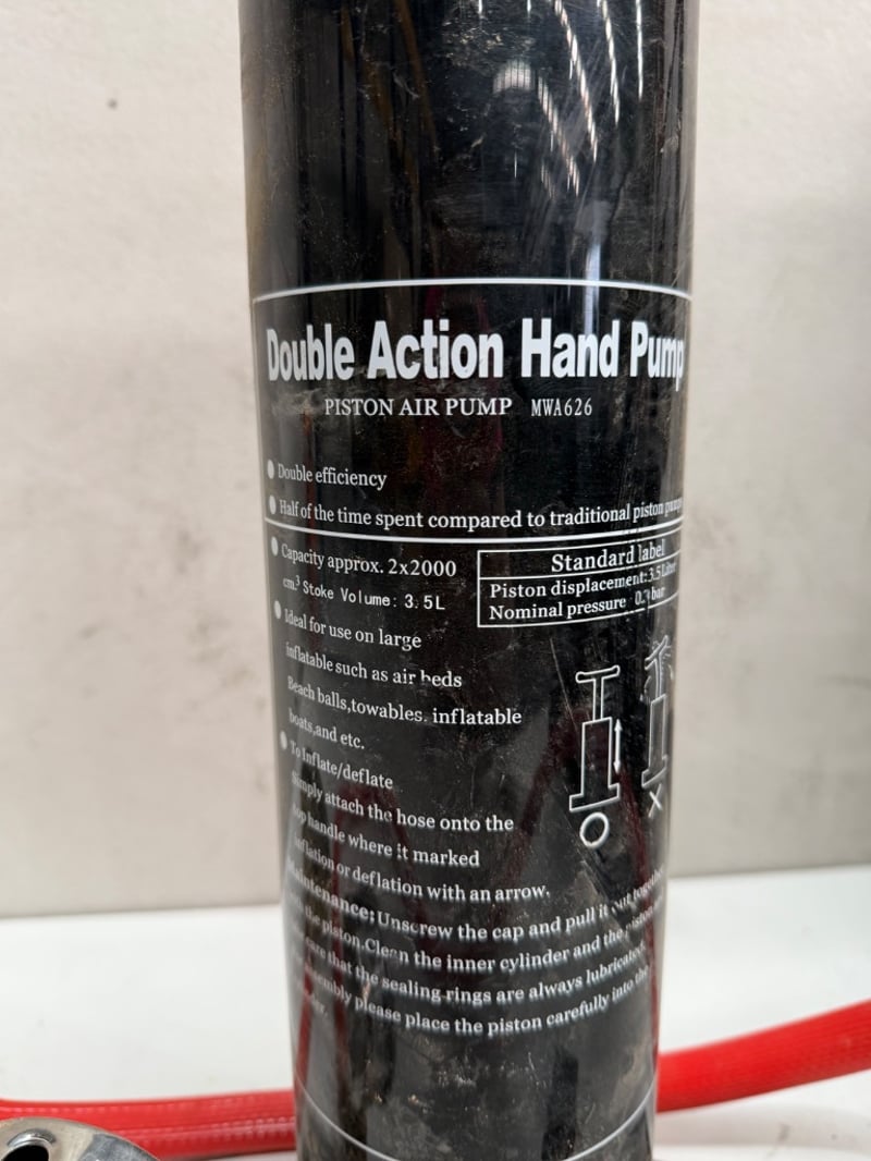 2X Dual-action hand pump (model MWA626, piston air pump with 3.5L capacity, 2x2000cm³ stroke volume, nominal pressure 1.2 bar). SOLD AS LOT