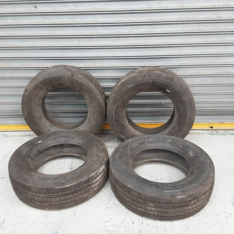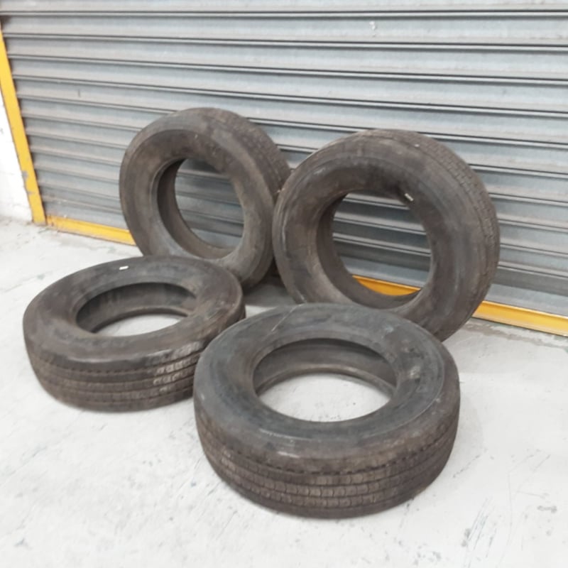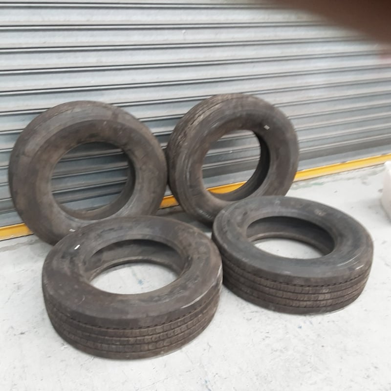 Set of four used vehicle tyres in fair condition. The tyres display moderate wear with visible tread patterns still present across all four units. Sold as a lot of four.
