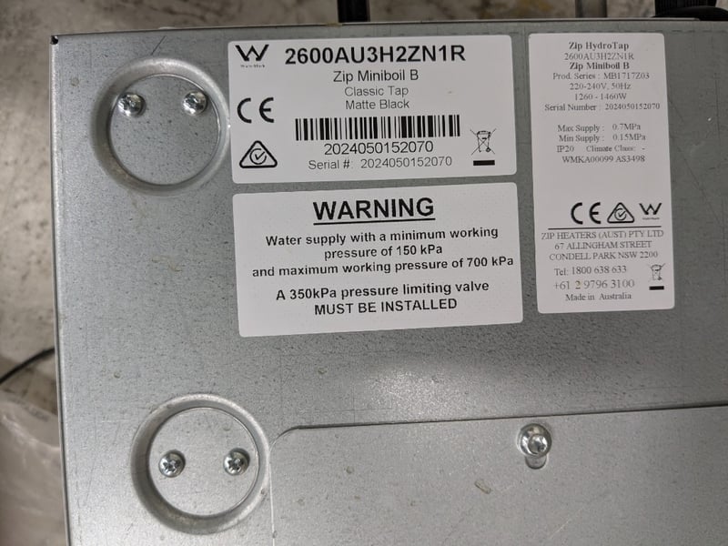 Zip HydroTap Miniboil B Compact under-bench filtered water appliances designed for residential or workplace kitchens. This specific model (Miniboil B) provides instant filtered boiling and cold water