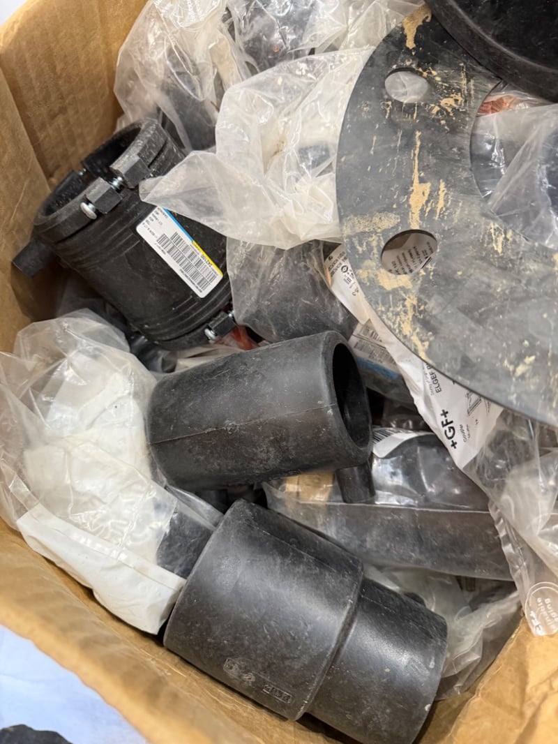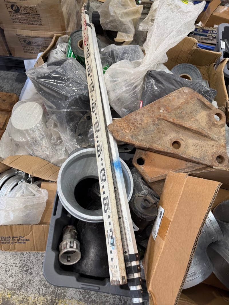 Assortment of various plumbing tools, equipments and pipes. SOLD AS LOT