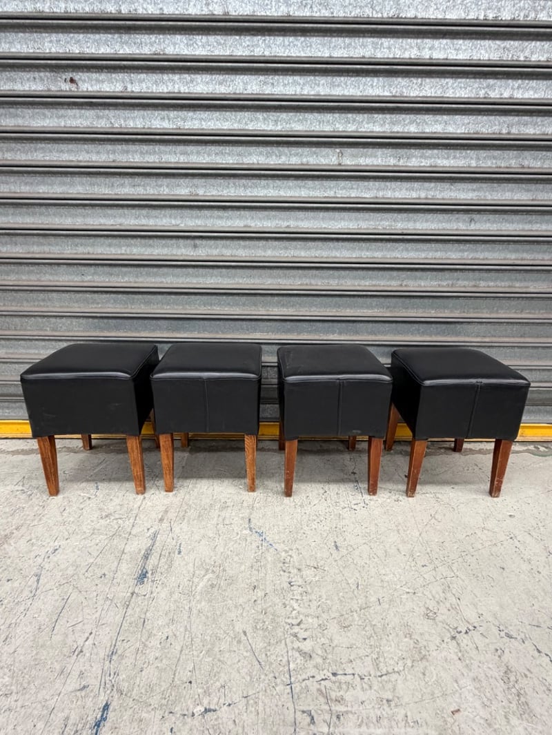 Set of 4 stools. Brand is unknown. Signs of wear consistent with previous use. Approximately Dimensions: 36Wx46Hx36D cm SOLD AS LOT