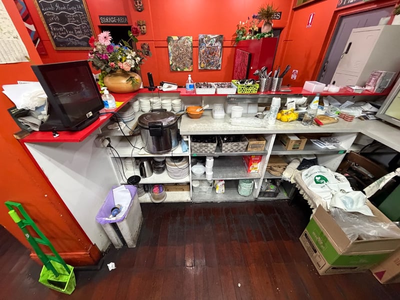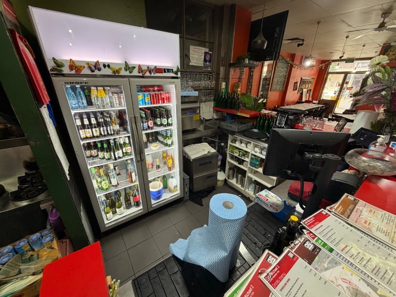UNRESERVED Café/Restaurant Fit-Out & Equipment (One Lot)Complete café/restaurant closure offered as a single lot, including commercial kitchen equipment, refrigeration, furniture and front-of-house items.Includes items such as:Commercial double door upright refrigerator/freezer (Polar)Additional upright and underbench refrigeration unitsGlass door beverage/display fridgesCommercial gas cooking line including wok burners & cooktopsDeep fryer with basketsStainless steel benches, prep stations & shelvingCommercial dishwasherMicrowave ovens & small kitchen appliancesRice cookerAssorted pots, pans, woks, gastronorm trays & utensilsPlastic tubs, food storage containers & prep itemsCrockery including plates, bowls & serving wareGlassware including wine glasses & tumblersPOS system including screens & terminalsFront counter/bar with integrated wine storageWall-mounted display screensDining tables & chairs (mixed)Stacked plastic and metal chairsShelving units, cupboards & storage racksDecorative items & display shelvingCleaning supplies & consumables