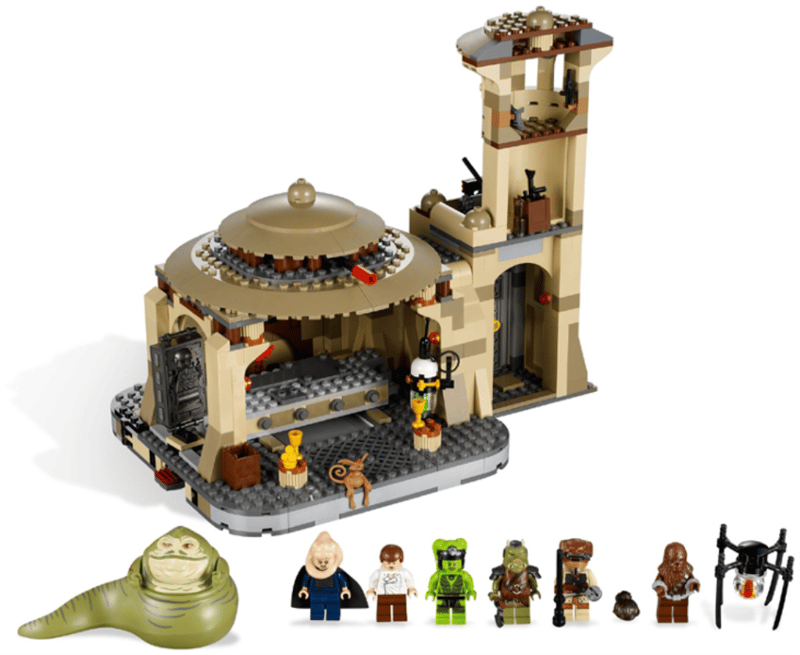 Jabba The Hutt'S Palace On Tatooine From Return Of The Jedi 717 Pieces Building The Desert Fortress With Throne Room, Han Solo In Carbonite Display, Working Gate, And Secret Passages. Nine Minifigures: Jabba The Hutt, Princess Leia (Slave Outfit), Han Solo, Bib Fortuna, Salacious B. Crumb, Gamorrean Guard, B'Omarr Monk, Oola, And A Palace Guard.