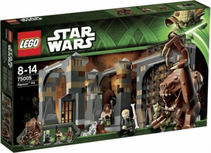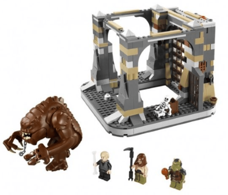 The Rancor Pit Beneath Jabba'S Palace 380 Pieces Building The Underground Lair With Gate Mechanism, Bone Pile, And The Massive Rancor Creature Figure. Four Minifigures: Luke Skywalker, Malakili (The Rancor Keeper, Crying), A Gamorrean Guard, And The Rancor Itself.