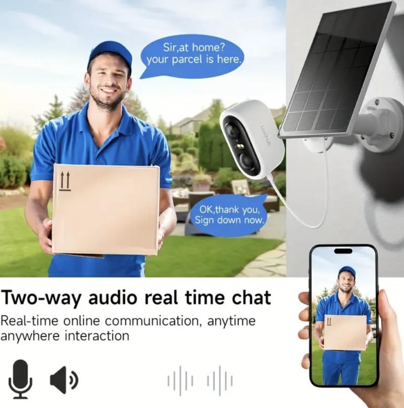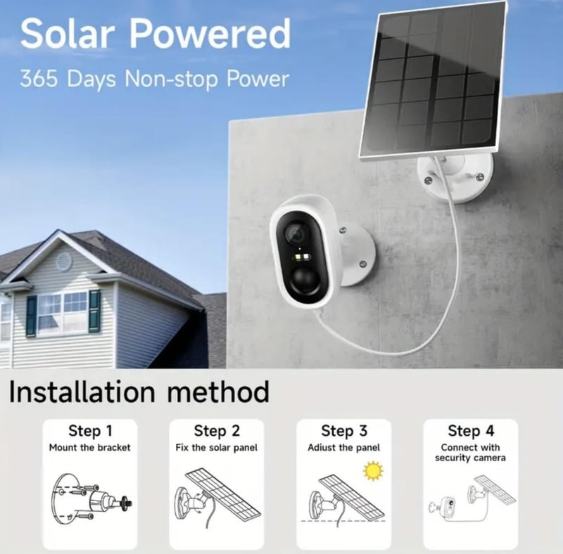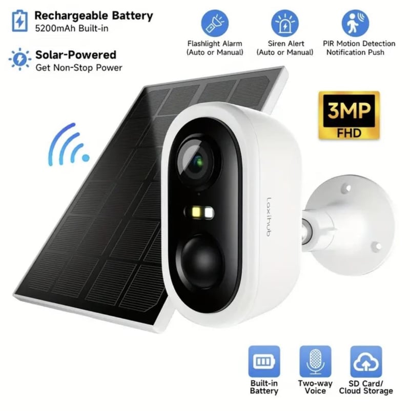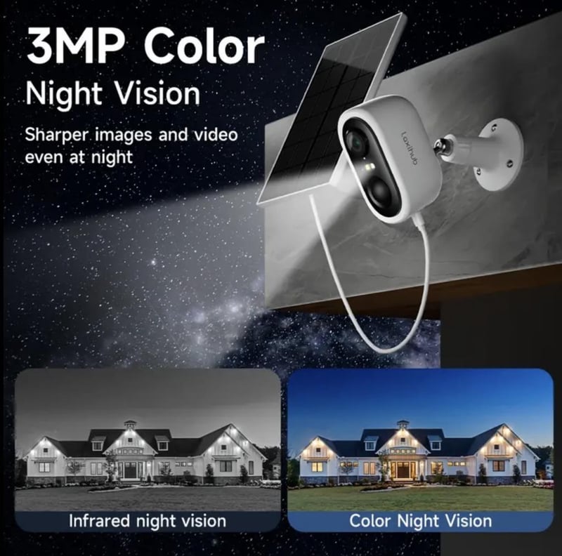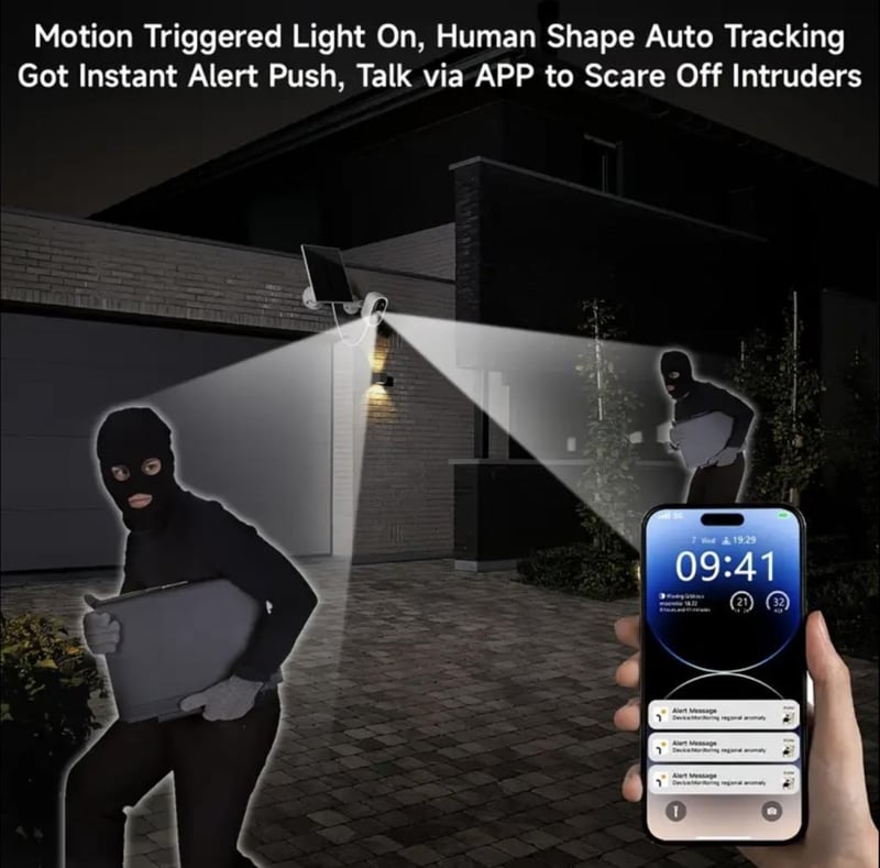 Wireless Outdoor Solar-Powered Security Camera, Rechargeable Wire-Free 3MP Guardian Camera with Color Night Vision, 5200mAh Battery, AI Detection & Instant Alerts, 2-Way Talk, Compatible with Alexa