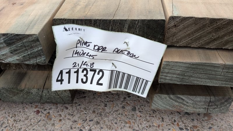 CCA Pine Lengths, 21 Pieces to pack Dimensions: 140mm(W) x 45 mm thick x 4800mm(L) BID PER LENGTH, MUST TAKE 21 NOTE: INSPECTIONS HIGHLY RECOMMENED