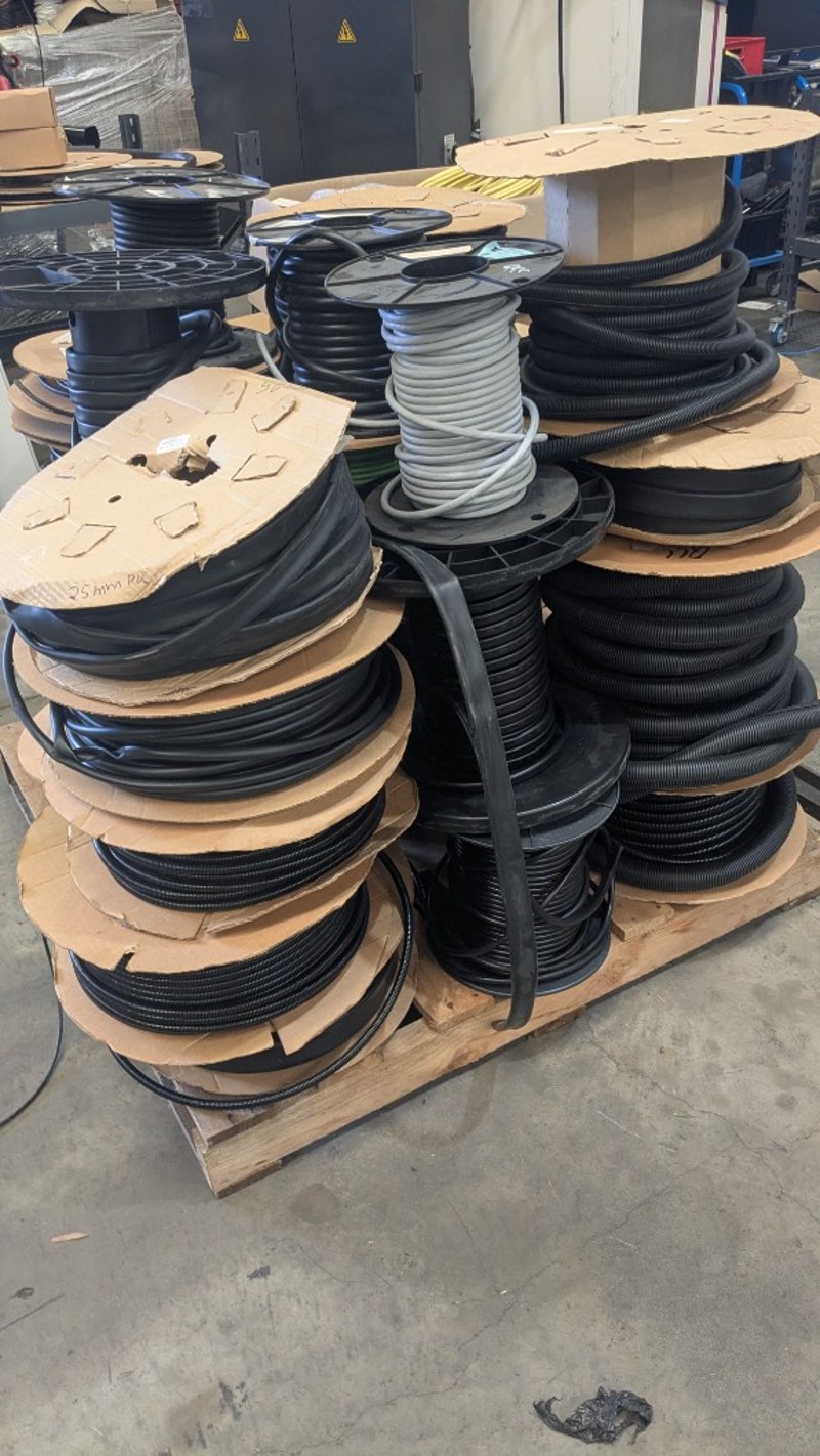 Assorted Electrical Supplies, Includes Cable, PVC Tubing, Hose and more, Quantity to Pallet
