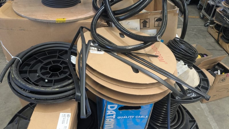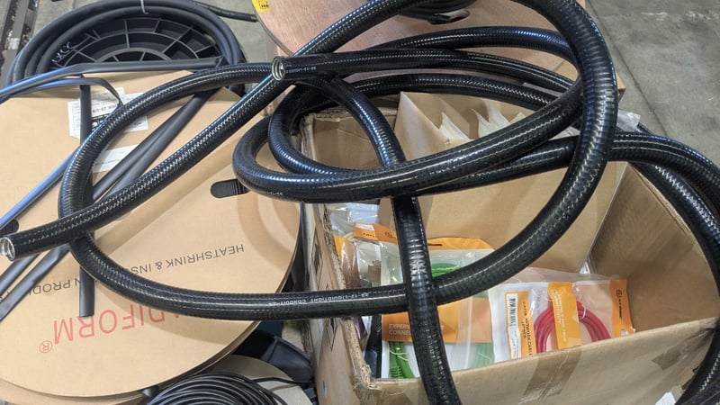 Assorted Electrical Supplies, Includes Cable, PVC Tubing, Network Cables and more, Quantity to Pallet