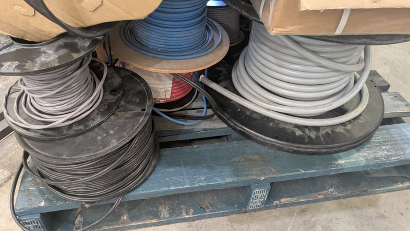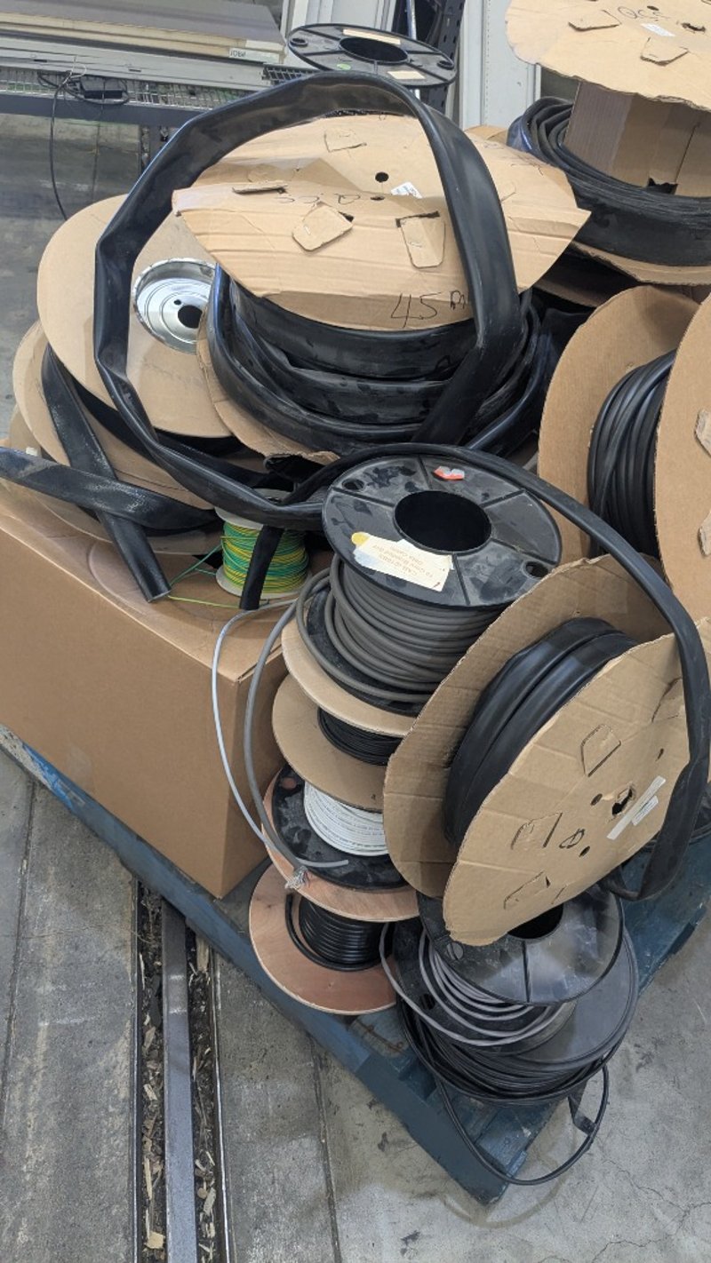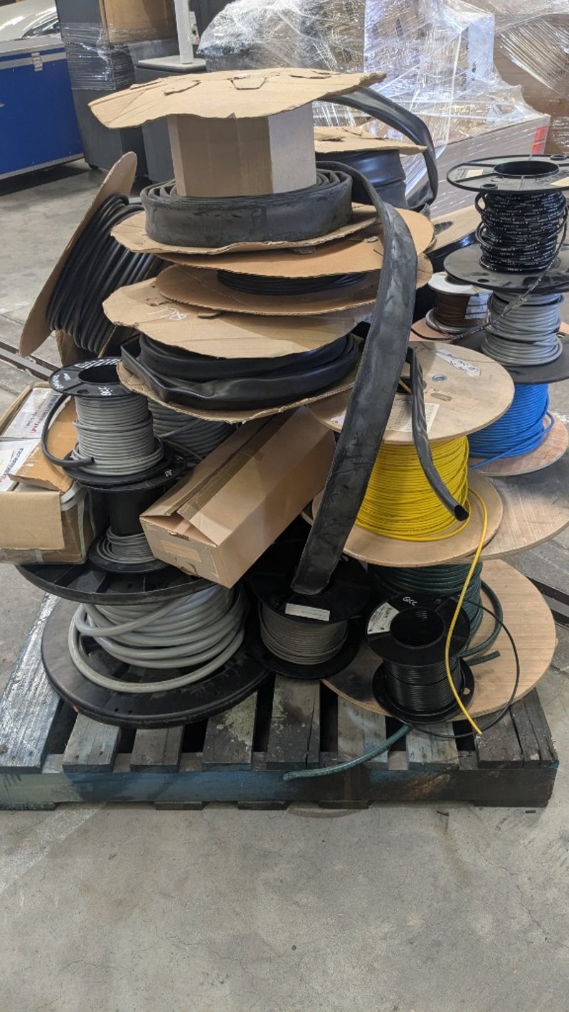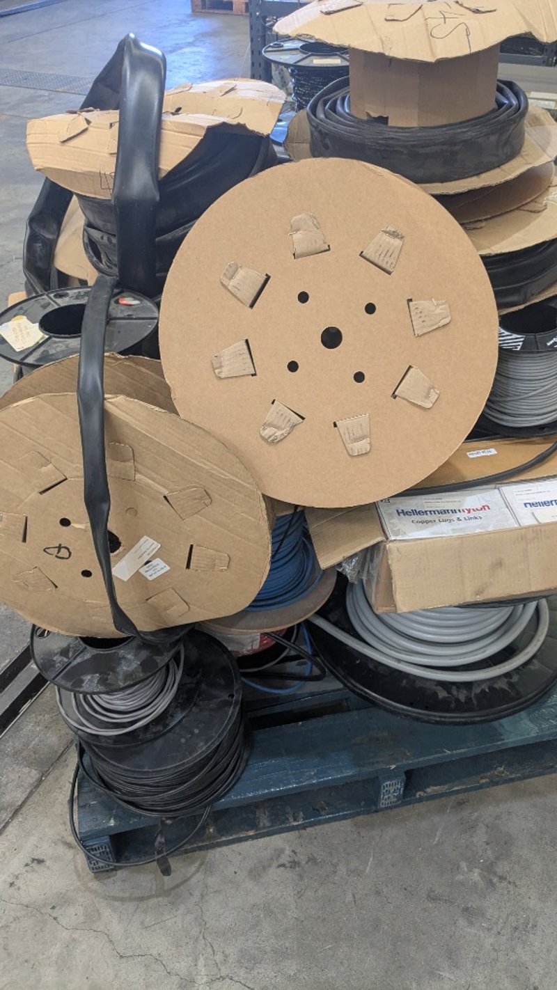 Assorted Electrical Supplies, Includes Cable, PVC Tubing, Copper Lug Links and more, Quantity to Pallet SOLD AS LOT NOTE: INSPECTIONS HIGHLY RECOMMENDED